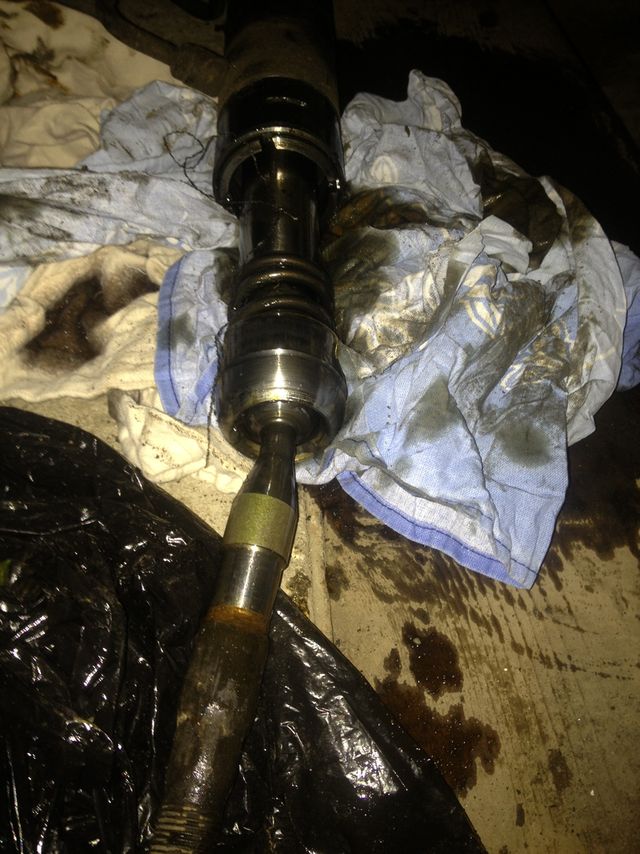 При снятии большого пыльника с рейки вытекло грамм 200 масла. Хана сальникам. + вот такая вот неприятность, пришёл конец рулевой тяге (гнутая она).
