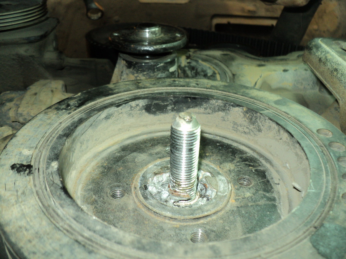 Добрый день, соратники! Пытаемся поменять ремень грм и балансировочный. столкнулись с двумя проблемами. первое - оказывается предыдущие "мастера" вместо болта коленвала зафигачили туда шпильку и две гайки. Второе - не можем сдернуть сам шкив коленвала. снизу фомкой поддеваем - вроде шевелится, а сверху не за что упереться - пластиковый кожух. Вот и подвисли. Пишу с поля боля ) Помогите советами как сдернуть шкив, ну и если будут мысли - как как вывернуть шпильку - пытались выкрутить - проворачивается коленвал, даже с учетом того, что шкив закреплен.