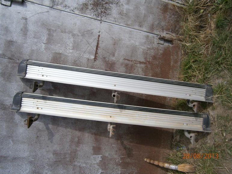 Пороги в отличном состоянии, на правом небольшая царапина, на фото видно. С креплениями.