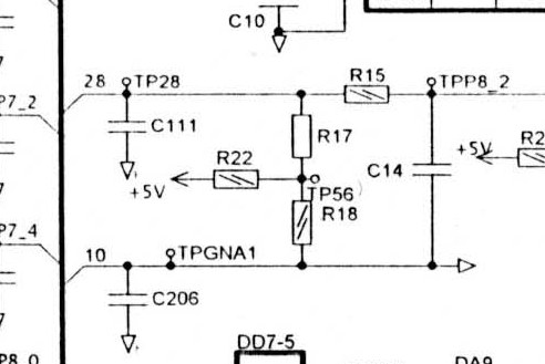 Как то так. Только напругу нужно до одного вольта. Или посадить выход на сопротивление и изменяя его измерять тестером напряжение и смотреть какое напряжение видит комп.