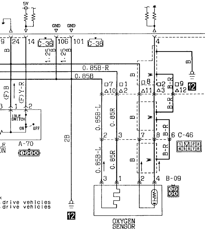 ЭБУ-то видит, но во внимание не принимает, значит где-то там у нее крыша поехала. Хотя есть вариант, что сигнал выходит за границы, где ЭБУ может его эффективно регулировать, например, форсунки потекли, хотя в поведении движка ничего не изменилось, и не похоже на сильно текущую форсунку. С январем не стоит сравнивать, здесь сигнальный вход притянут на землю, видно из схемы, и при отключенной лямбде ЭБУ видит ноль, так что все сходится. Копать в сторону контактов - а куда? Уже все ведь проверил, где еще можно проверить? Сегодня попробую глянуть своим софтом ошибки на всякий случай, а также сигнал датчика ХХ который в дроссельной заслонке, evoscan эти данные не видит.dvm99 писал(а):Дим, дык ведь получается, что ЭБУ сигнал прекрасно видит, зачем его менять?
