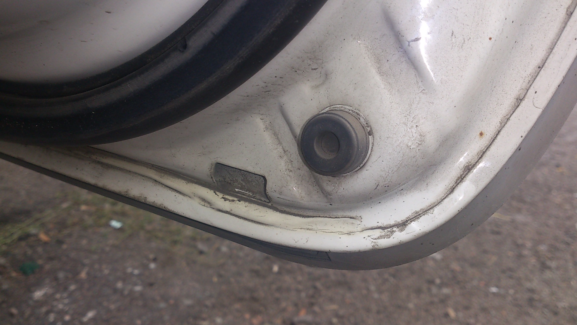 Уважаемые бегемотоводы! Посмотрите пожалуйста на заднюю дверь изнутри. Есть ли в оригинале по контуру двери, по соединению внутренней металлической части с внешней металлической накладкой полоска герметика слегка мягкого под краской?