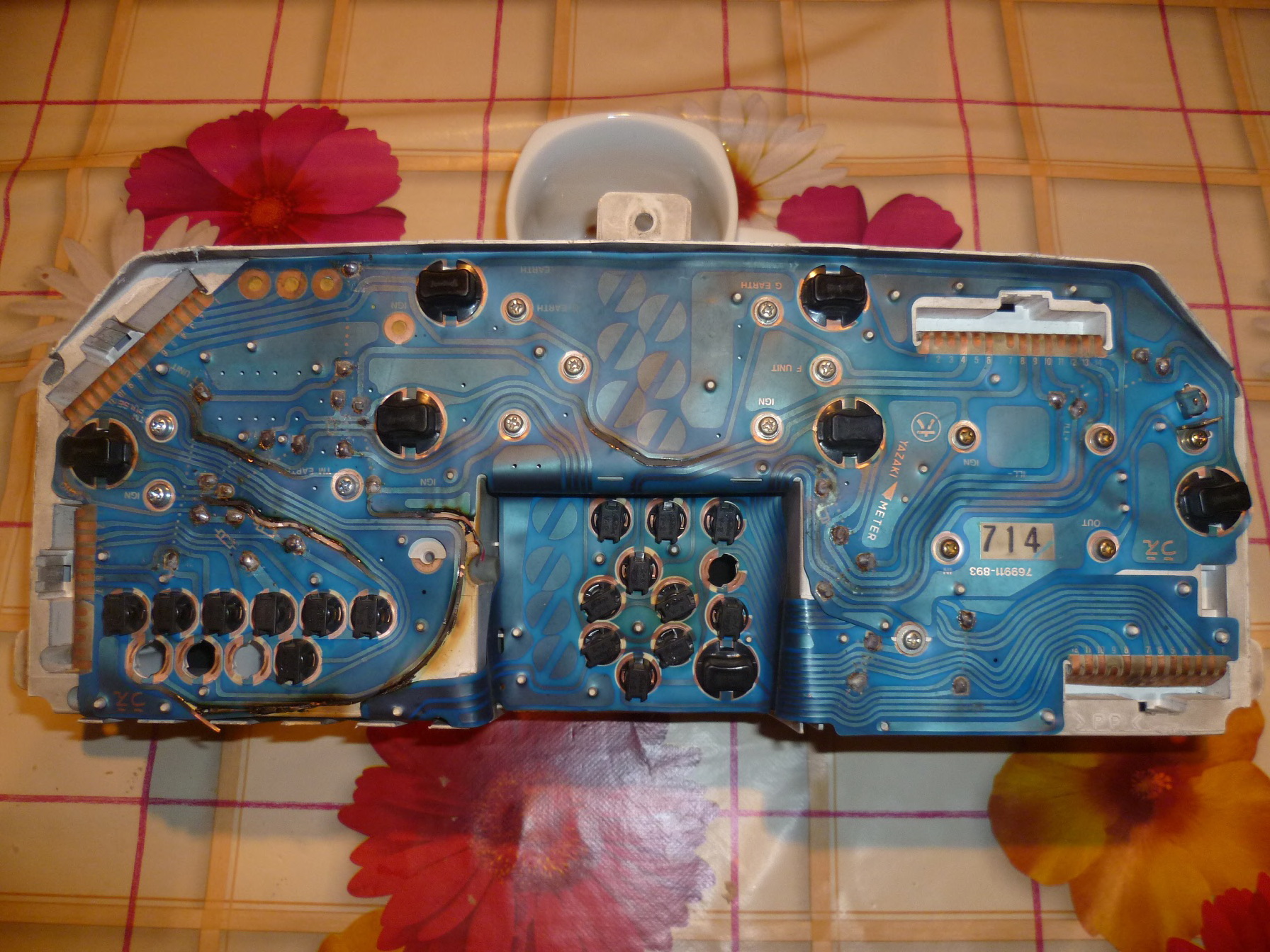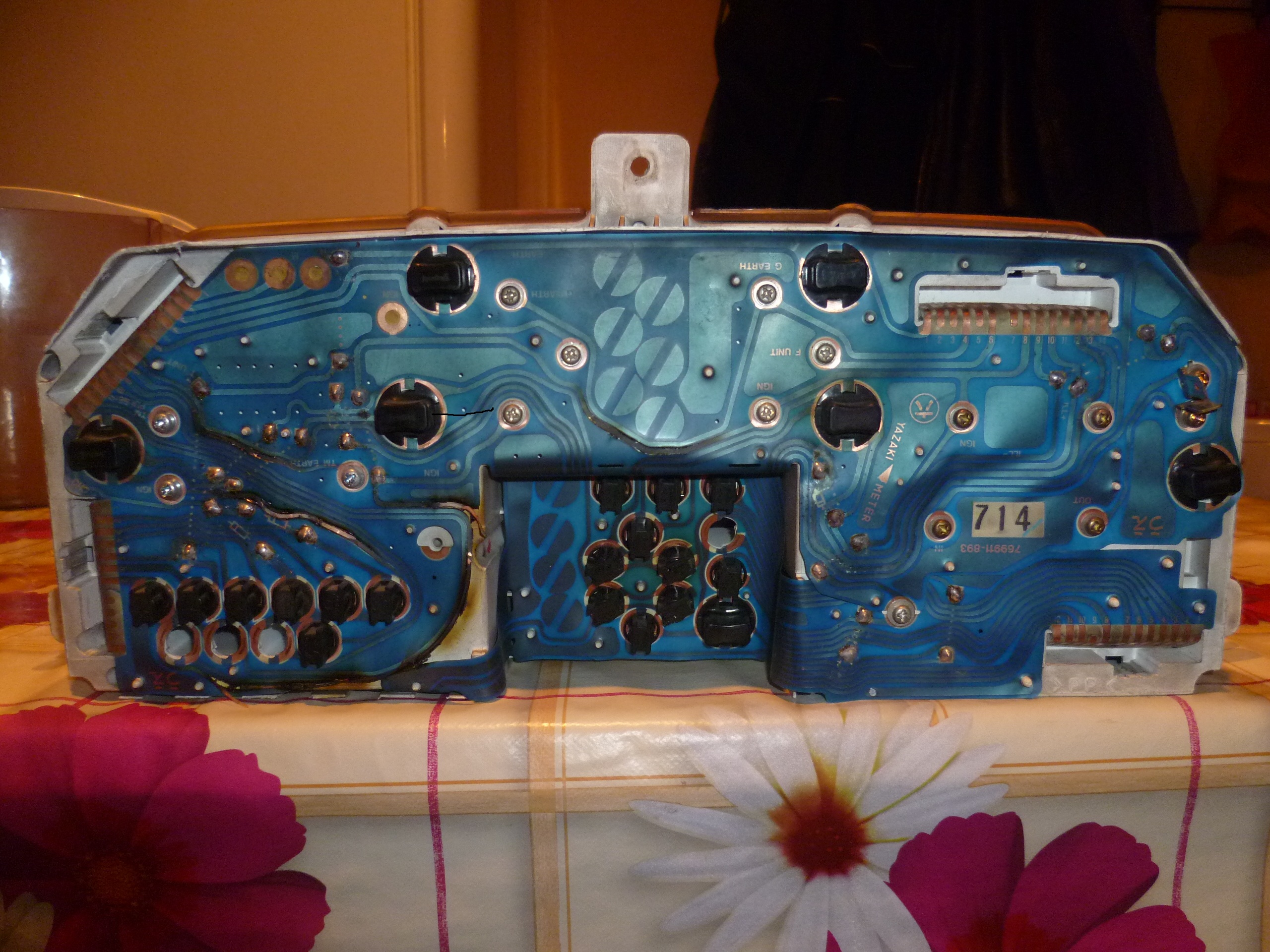 Лицевая сторона идентична. На твоей сзади почему-то нет лампочек подсветки указателей Т. и уровня . Ну, не знаю... пойдет? Остальные распиновки похожи.