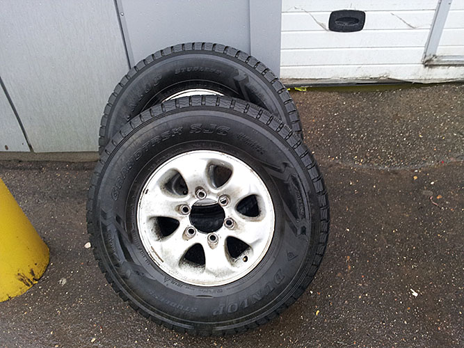 Резина Danlop Grandtrek SJ6 265x70 R15. Хватит еще на одну зиму. Фото приложил. Хочу 6000 за все. Забирать в Москве в районе м. Академическая.