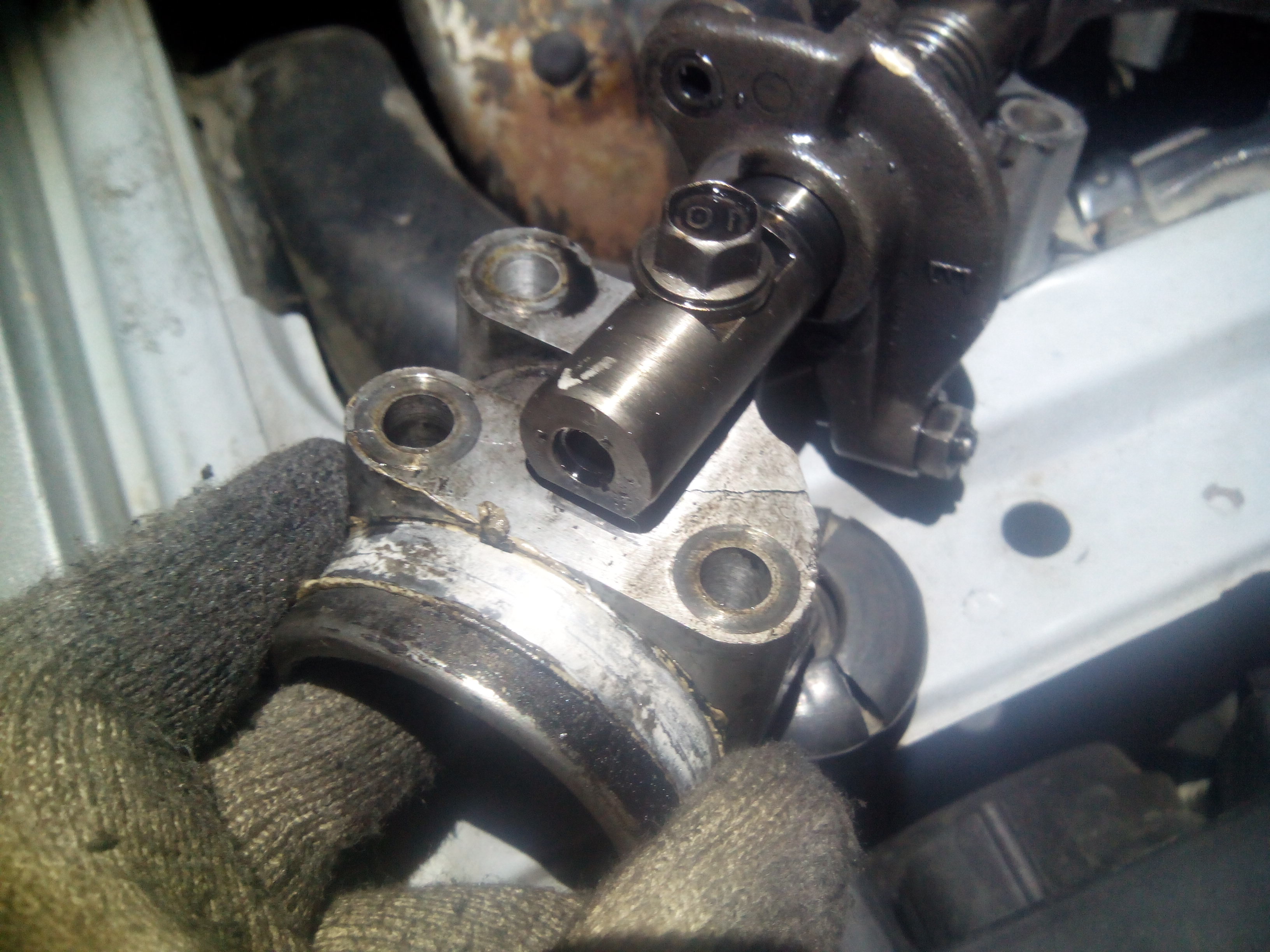 Вобщем снял я эту фигню с коромыслами. на ней трещины в со стороны шкива распредвала. Под замену.
