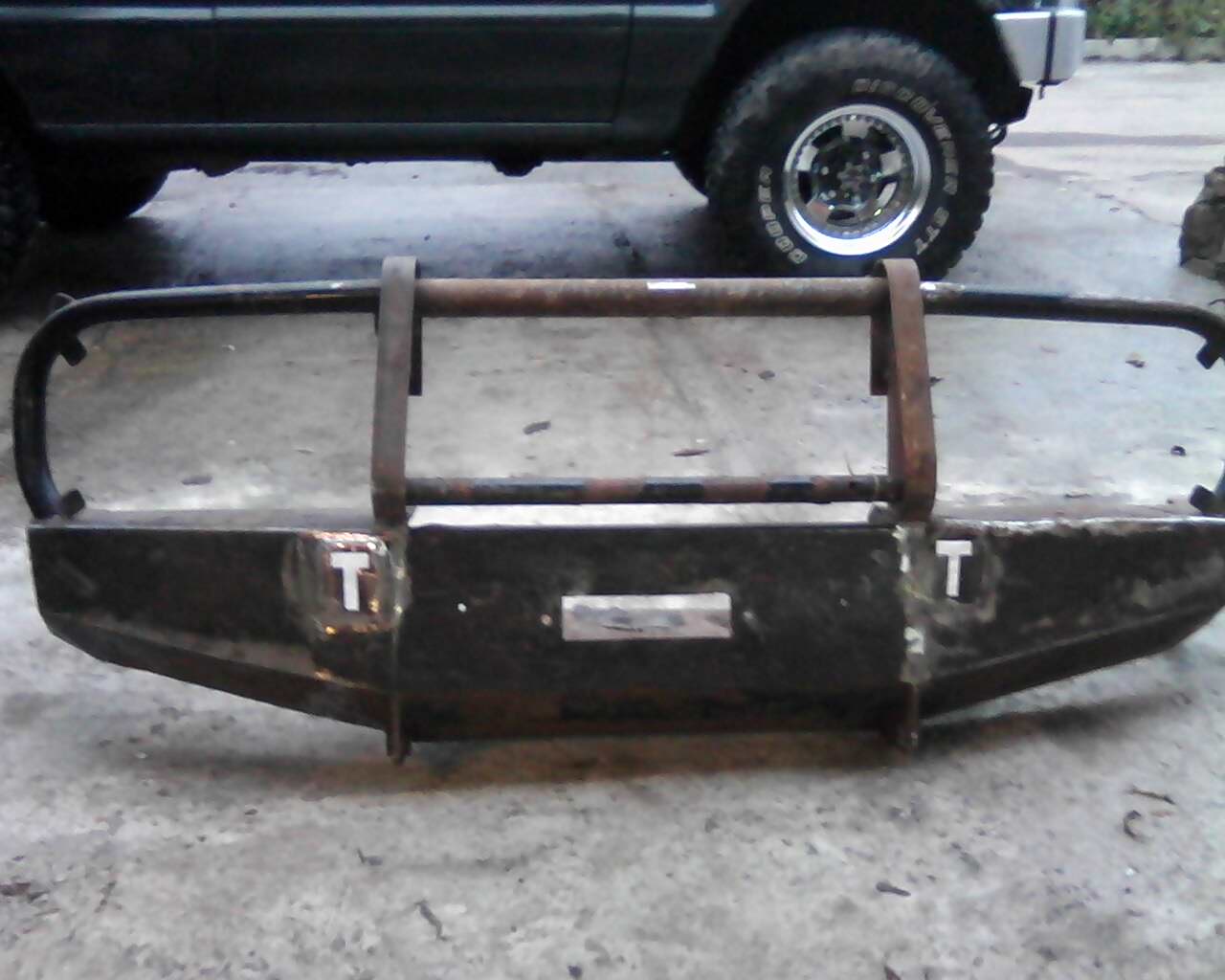вот фото у кого покупал, в описании авто боди 6см, на крепеже бампера есть два ряда отверстий под разные как я понимаю высоты, площадка под лебедку есть, опять же с описания стояла 12000, понравился тем, что лебедка стоит сверху, удобно контролировать процесс использования. на фото видны следы от сварочных работ,метал 3мм пробовали поправить кувалдой не поддался, пришлось вырезать и в варить новые детали у специально обученных спецов. не стал пескоструить и красить, чтоб не поднялась цена, и не вкус и цвет фломастеры твердые.и по опыту владения на уазке рифофского бампера, так впечатление что близнецы.