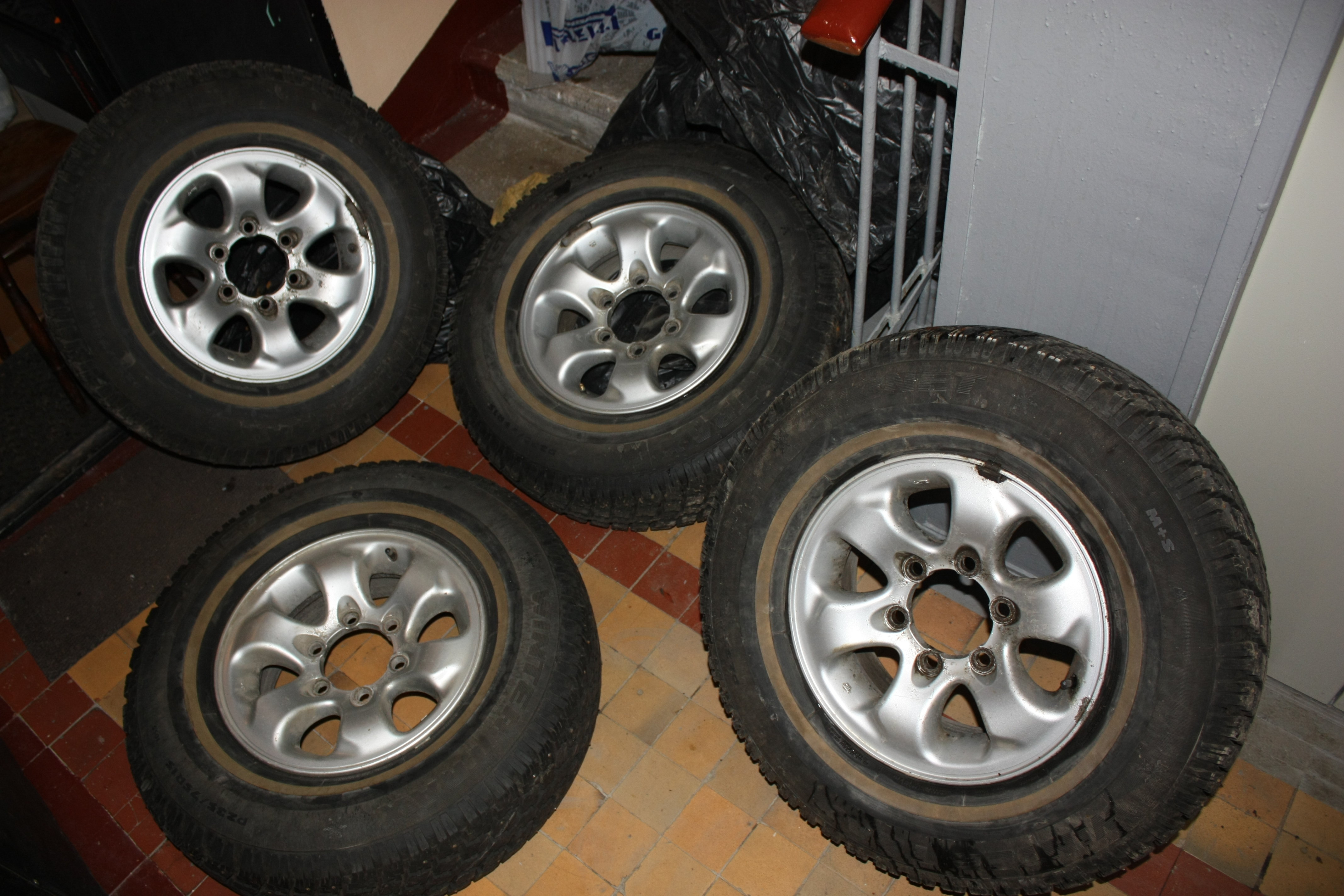 Диски с потертостями, резина в хорошем состоянии, дырок без шипов не нашел.