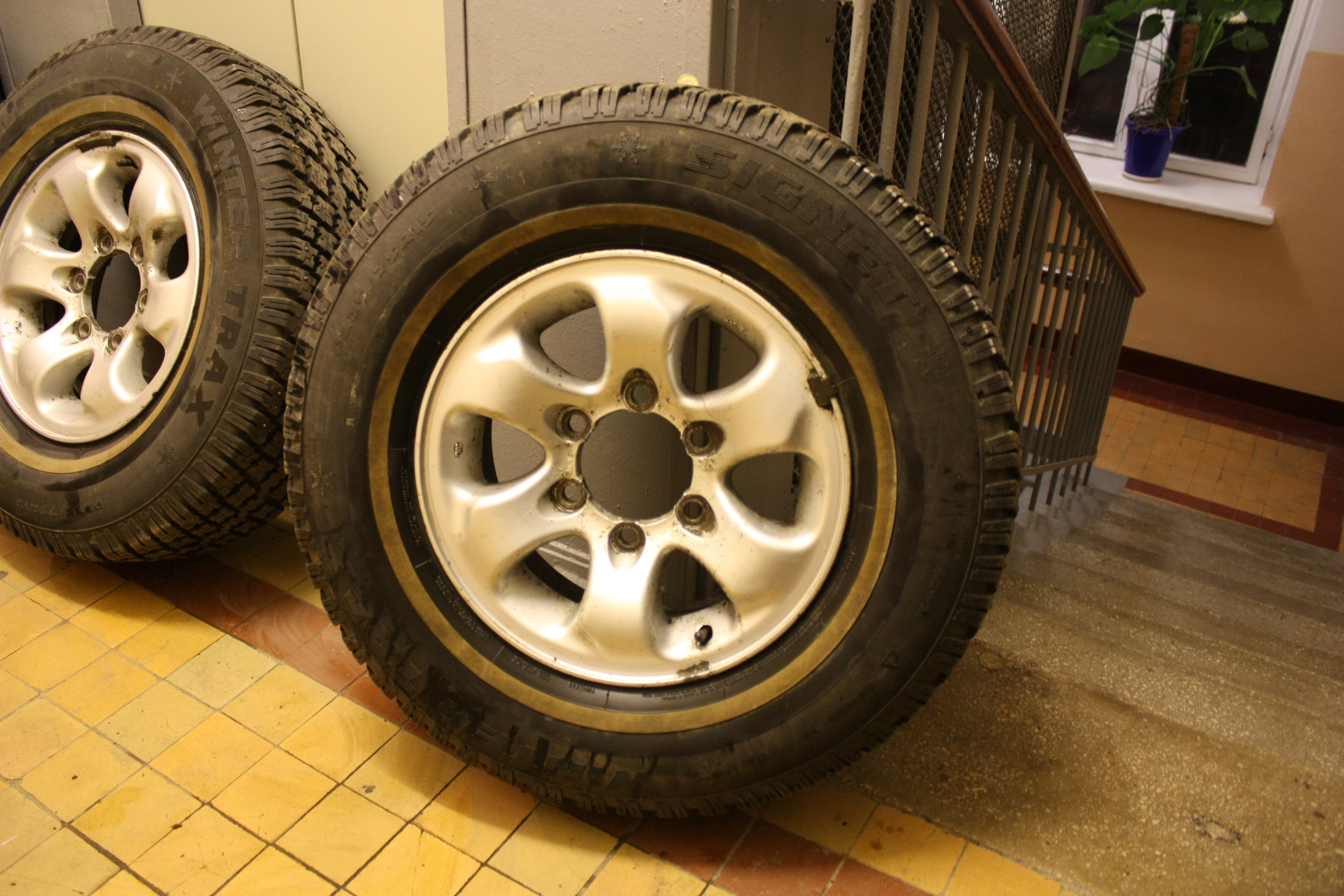 Продам шипованную резину Signet Winter Trax на паджеровских "ромашках" JJ15x6 ET33, комплект 4 шт., в Москве.
