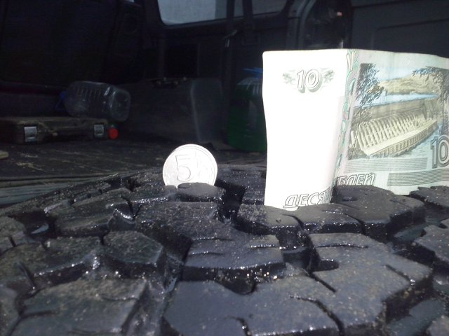 Состояние нормальное без грыж и порезов, высота протектора 10мм везде из чего делаем вывод что износ равномерный.