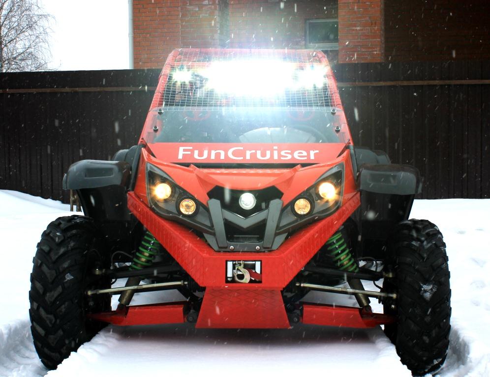 Сделан профтюнинг хэнд мэйд и доработка каркаса безопасности, много вложено труда и филок. Установлены спортивные амортизаторы, чипнутые мозги, мощный светодиодный свет, cостоящий из 2 элементов рабочего света, длинная доска - дальний свет , лебёдка T-max 3500.