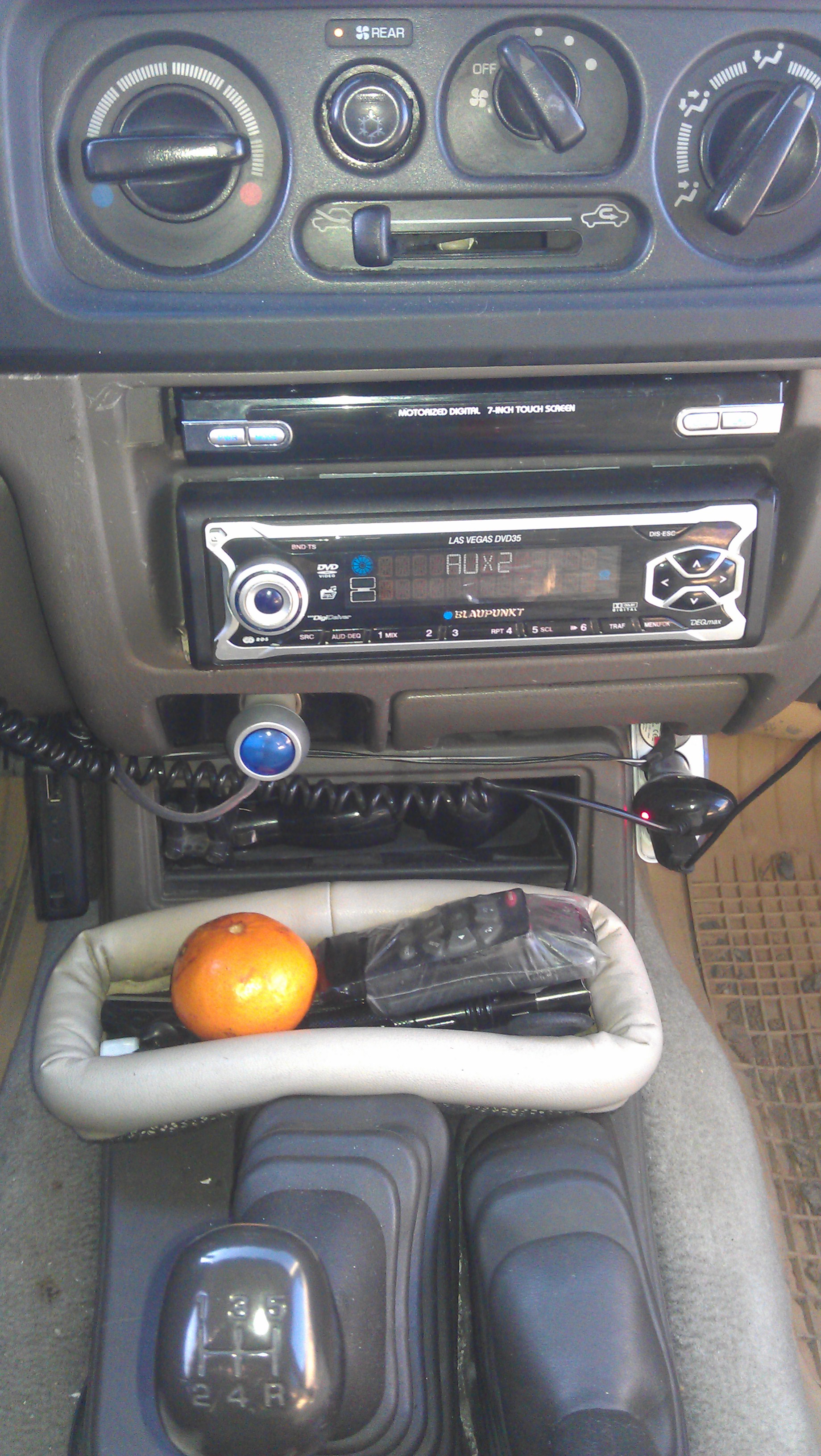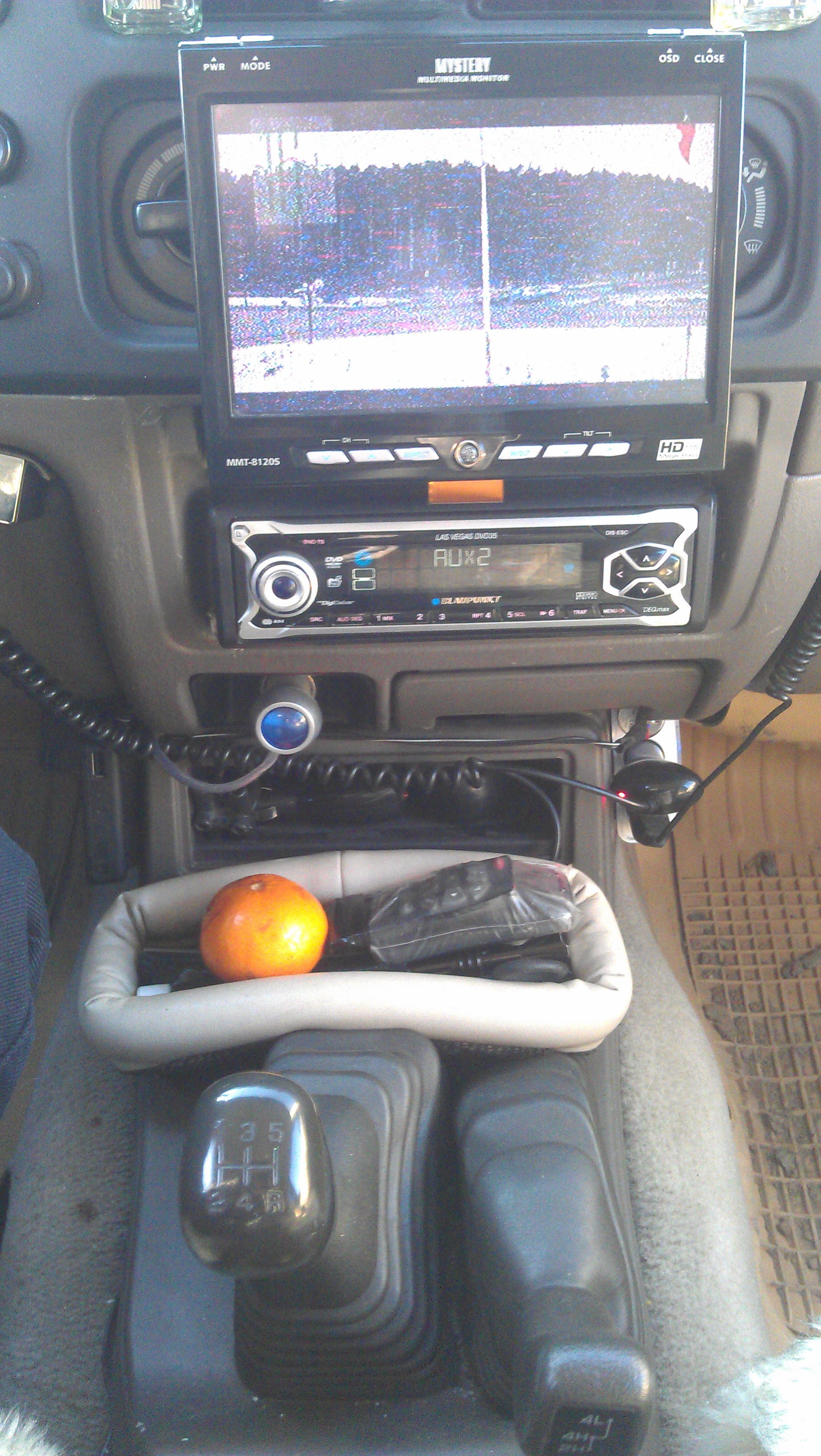 В свое время, 5 лет назад, вопрос организации мультимедиа в машине решил так - вместо подстаканников 0.5 din телевизор-монитор, 1din магнитола с ДВД и медиаплеер с жестким диском. Все отлично работает но хочется что то посовременней. Вот фото как у меня сейчас.