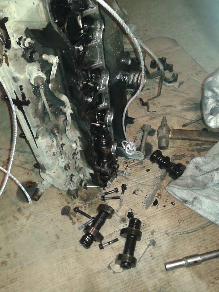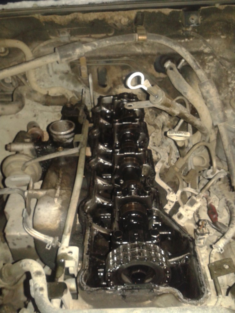 2.5к клапанная крышка (ее пробило осколком натяжителя.)