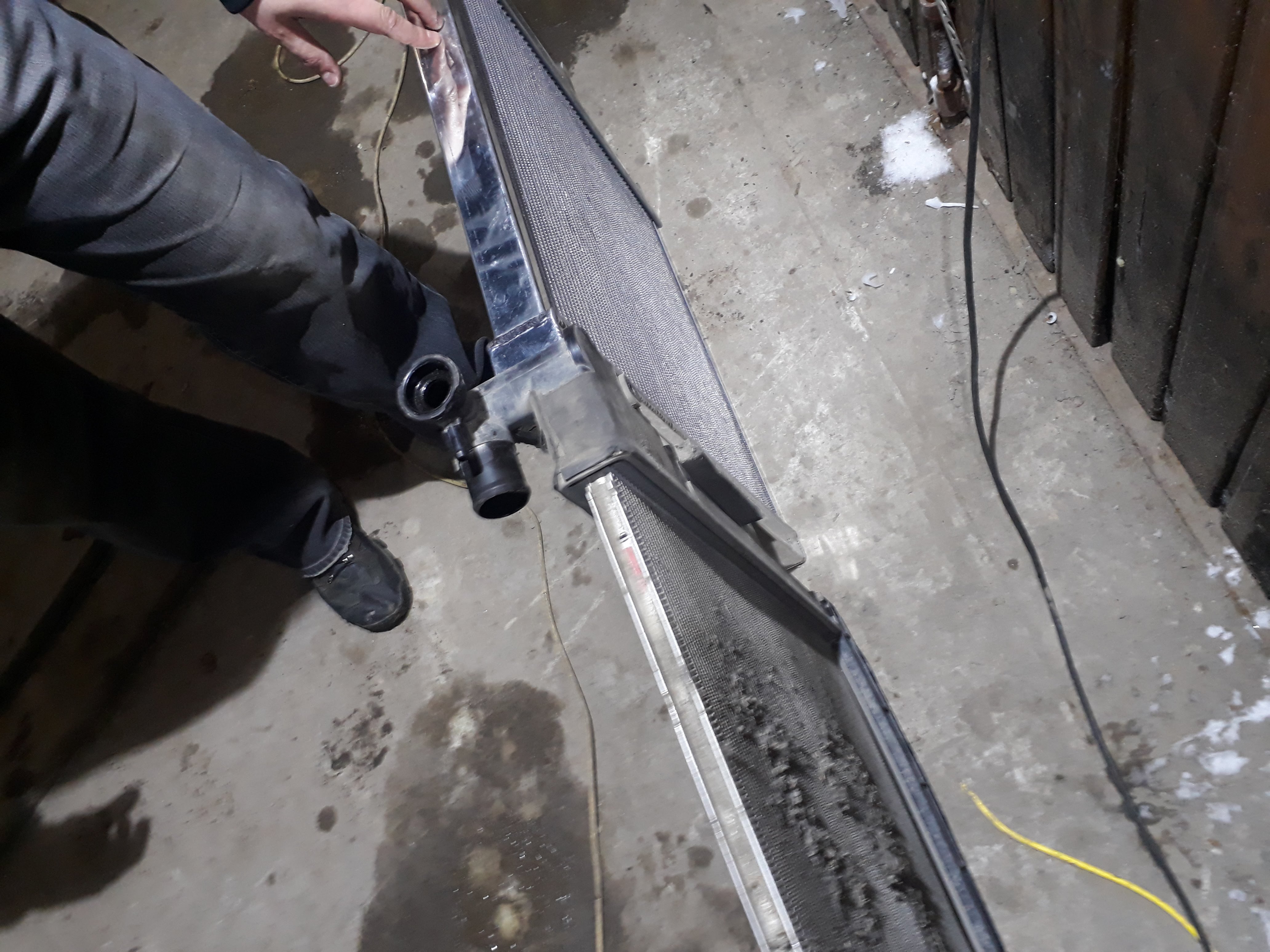 Предистория: в верхнем правом углу, под кожухом потек радиатор в месте сочленения. Выдавило в морозы.