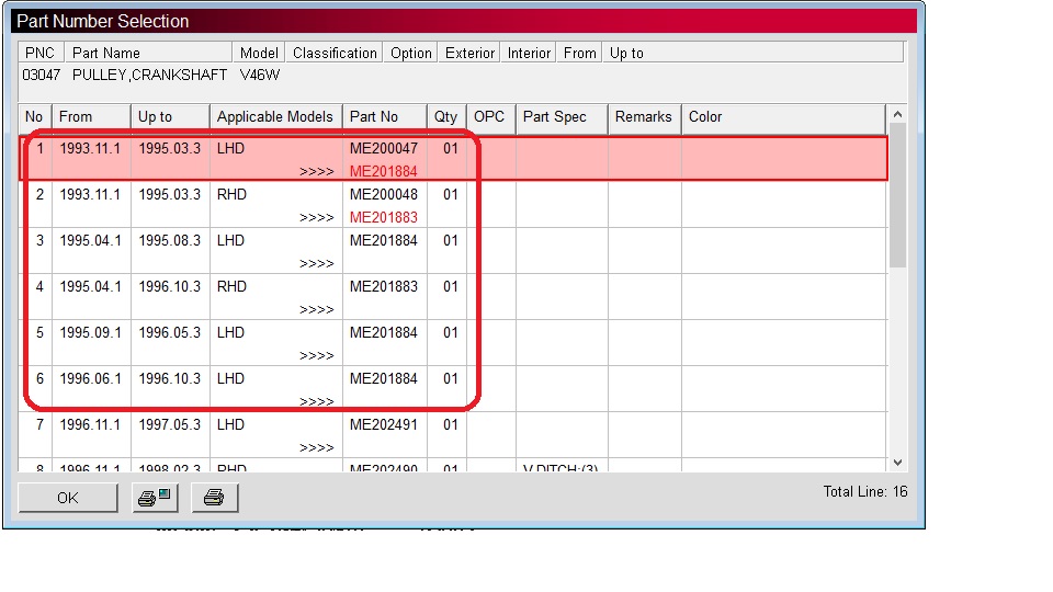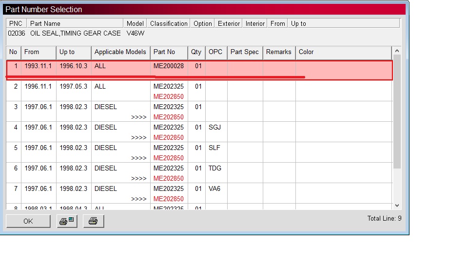 МЕ200028. Цвет синий, с отбортовкой. Позиционируется как сальник для модификаций двигателя 4М40 выпущенных до 1996 года. Сальник имеет 2 линии контакта с обоймой шкива коленвала. Первая, это уплотнение по пластику - "воротник". Второе, уплотнение приклеенное с обратной стороны сальника и изготовленное из фетра. Только этот фетр и уплотняется при контакте с обоймой шкива "дэ факто". Пластиковая дорожка "воротника" предназначенная именно для уплотнения зазора имеет диаметр почти на 4 мм больше. Обойма шкива даже не касается тела сальника и слегка контактирует только с фетровым отражателем. Вполне естественно, что масло начинает истекать практически через 30 минут после пуска двигателя...