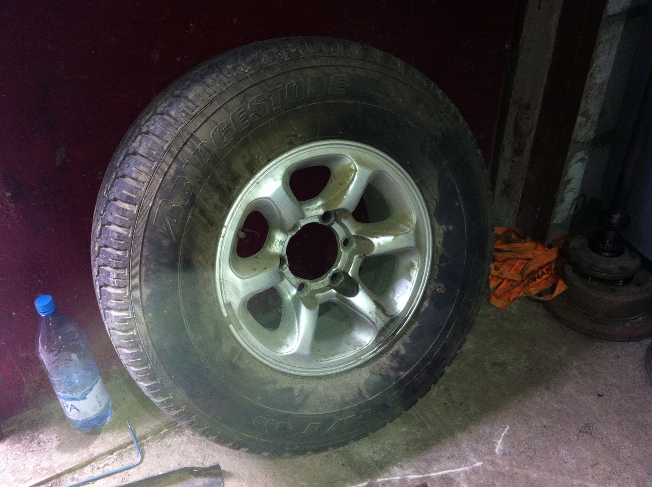 Покрышка - Bridgestone Dueler H/T 689 265/75R15- состояние отличное, всё время висела на двери (во всяком случае, при моем владении).