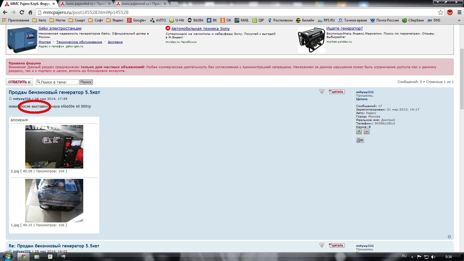 Фоткенама другие, тел другой, продает 2 шт. Не. Точно не он!SNOOPER писал(а):Не ну не может это быть один человек...........Pimff писал(а):http://www.avito.ru/moskva/remont_i_str ... _298666606 Вот еще один Дмитрий!Кучерявый,на авито дешевле продает хотел на клубнях нажиться,аж на целых два целковых.![]()