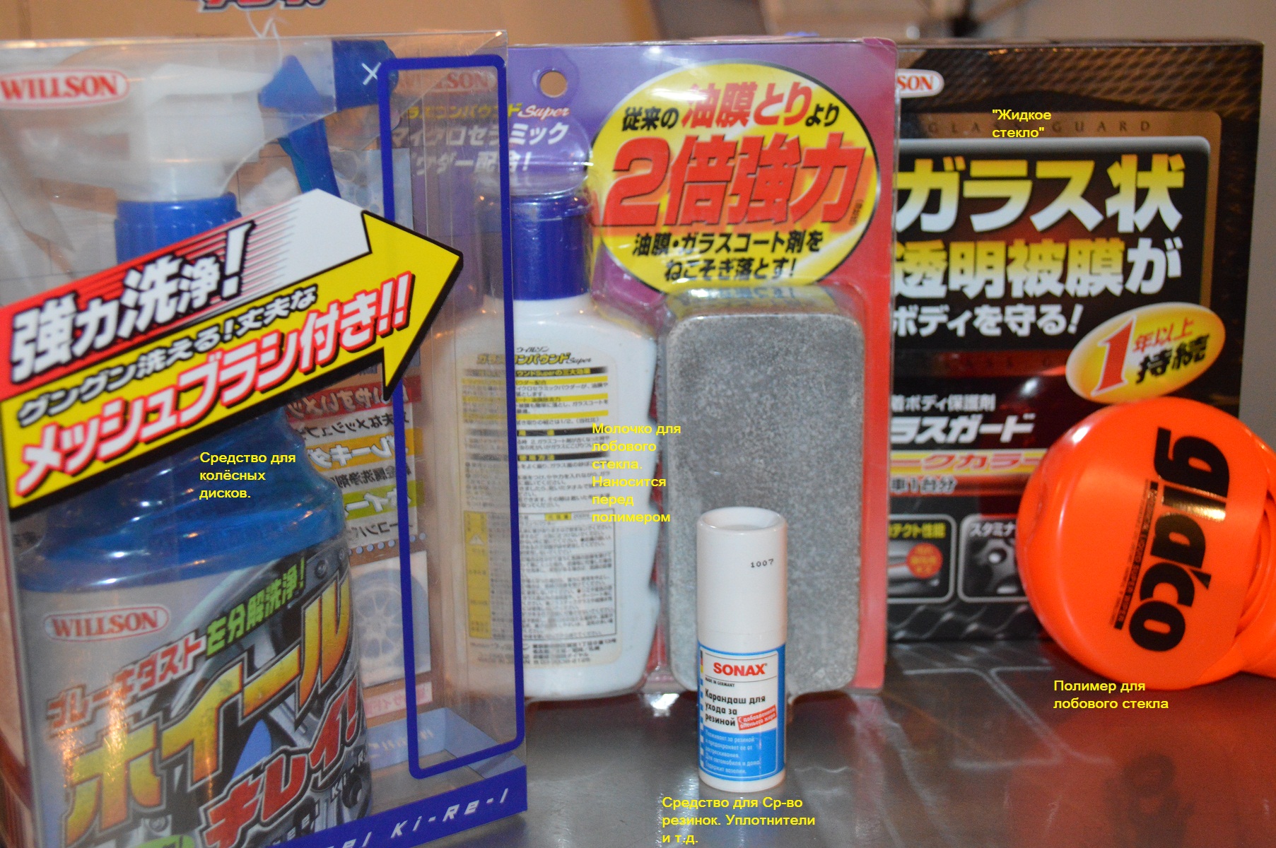 Автомобиль 12 г.в. Ранее раз в полгода обработка полимером Вюрт. ЛКП практически не заматовано. Решено испытать "жидкое стекло" в комплексе с остальными средствами д/ухода за внешним видом а/м. Фото прилагаю, средства подписаны. Последнее фото- "жидкое стекло" для светлых и тёмных а/м. Как мне разъяснили, разницы между ними никакой, маркетинговых ход производителя.