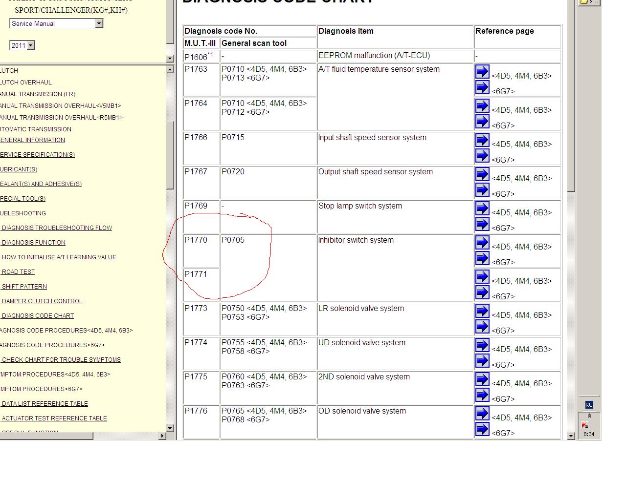 Тырнет говорит, что это: Ошибка Р0705 Неисправность в цепи датчика трансмиссии.Армеец писал(а):Поиск результатов не дал. Из списка ошибок сервис мануала такой ошибки нет.![]()