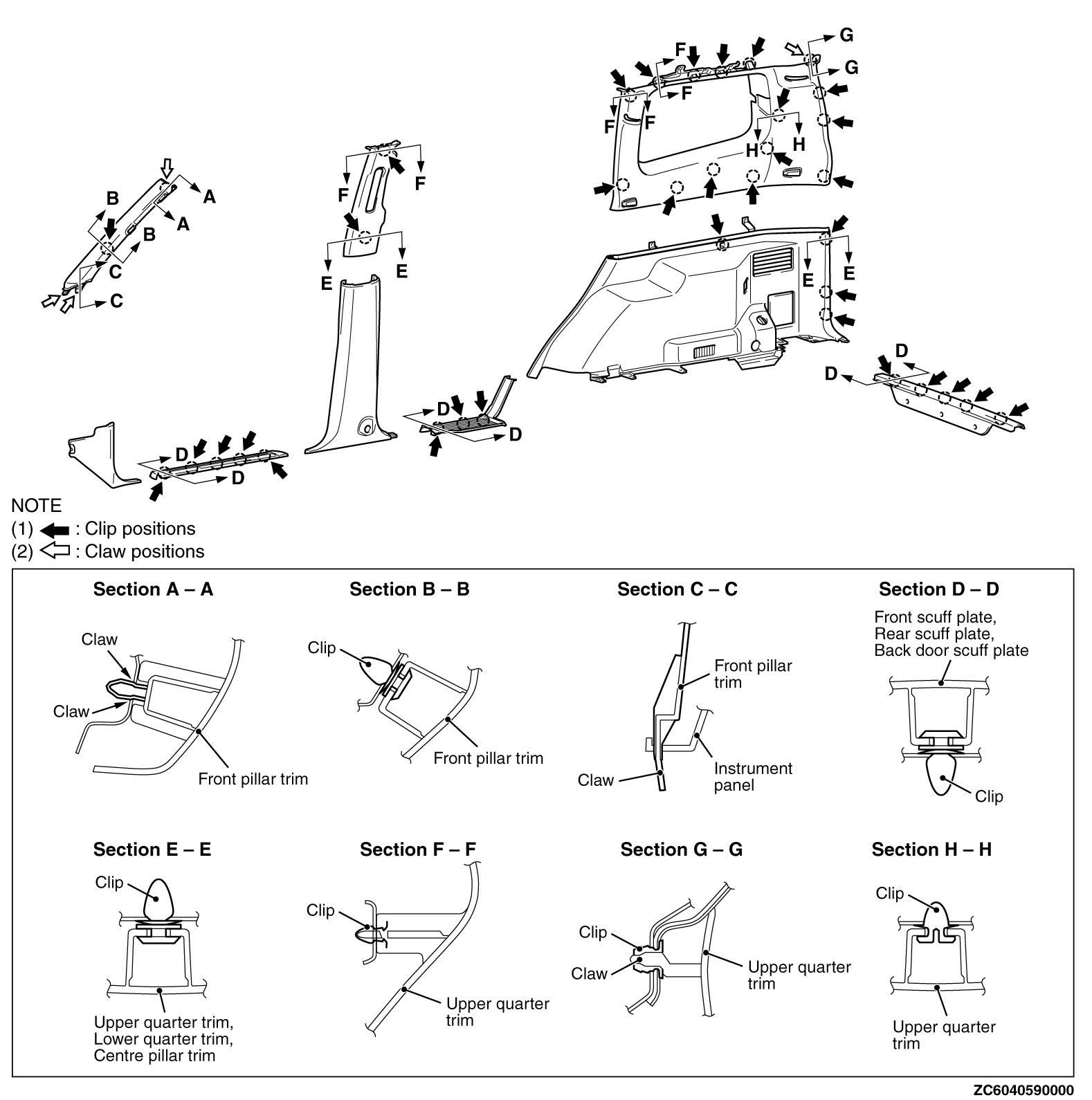 Аккуратнее с самым верхним креплением боковой обшивки (на картинке G-G). Вот его как раз лучше не рывком, а съемником вытянуть. Рывком оно может и в кузове остаться.