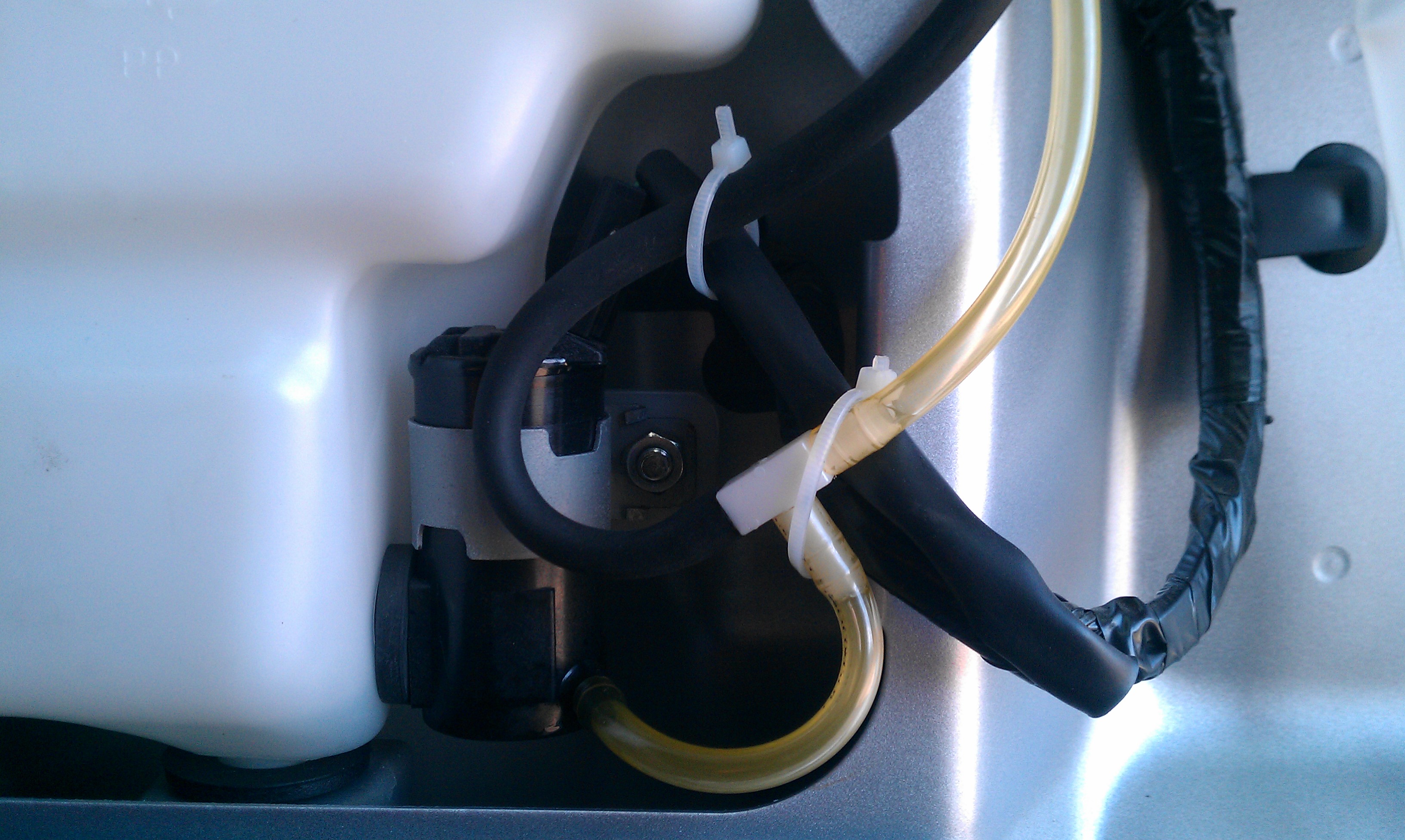 Ставим наместо бачок и подключаем к нему 2 направления через тройник. Наливаем жидкость в бачок и проверяем. Если все ОК!, то собираем все в обратном порядке.