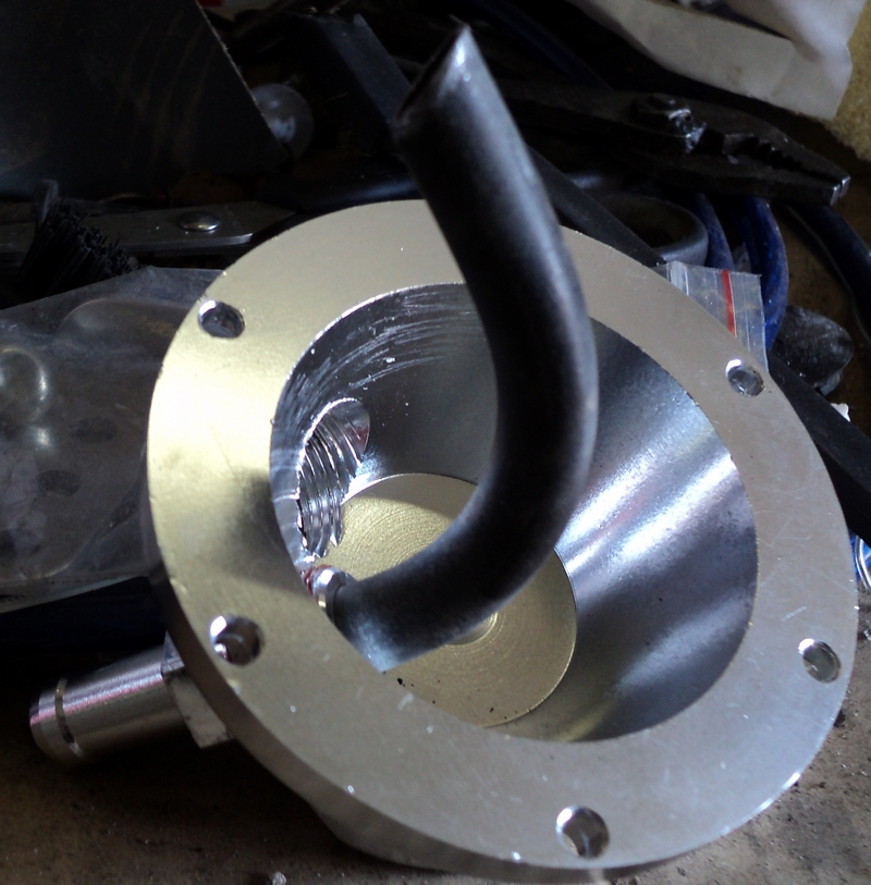 Получилось чуть ниже верхнего контрольного отверстия и почти впритык к стенке. Шланг родной,почитав отзывы, на другие нужды пущу,взял взамен обычный бензомаслостойкий 10ку. Осталось место найти.