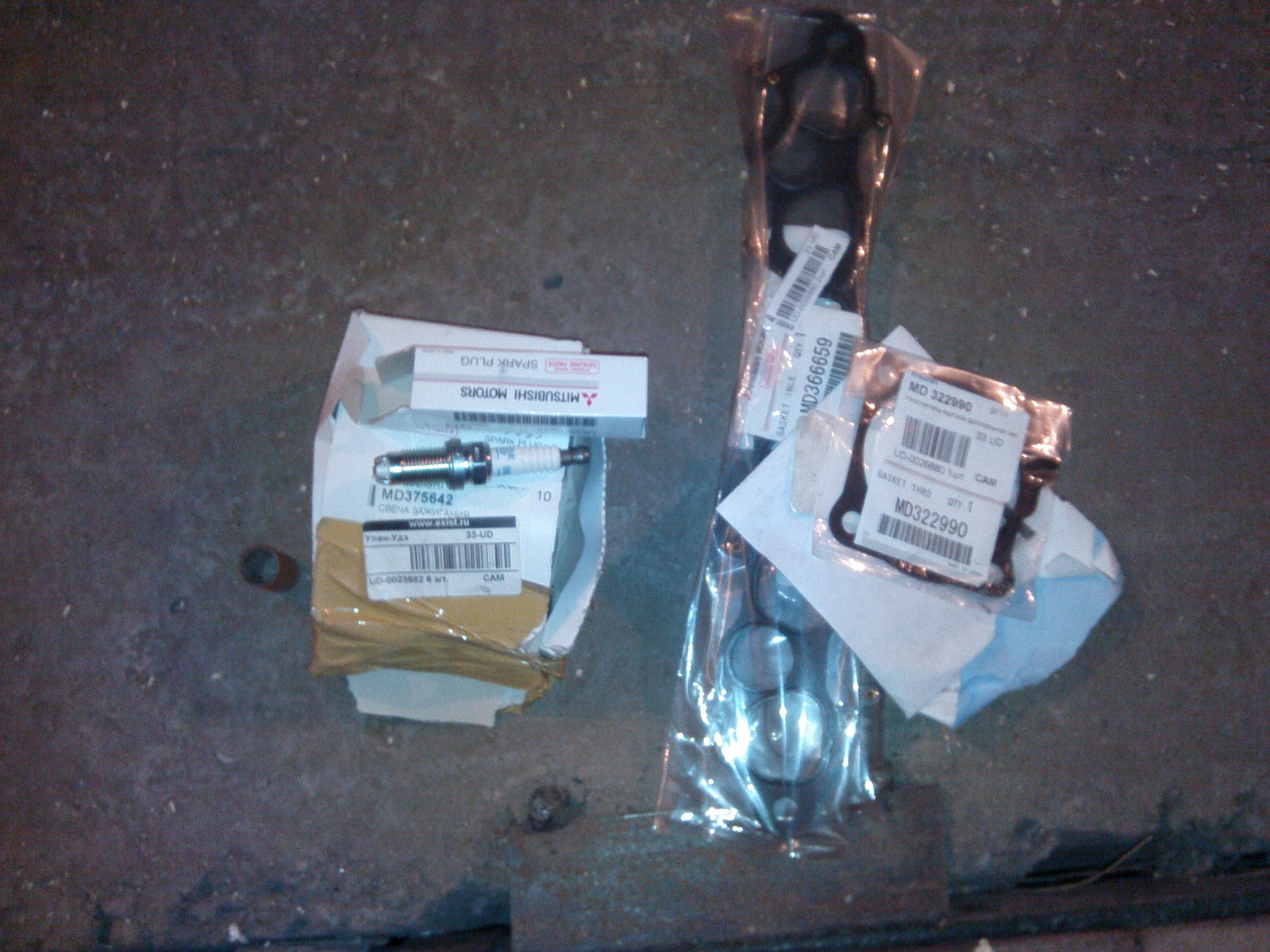 4) Свечи Mitsubishi MD 375642 - 6 шт. + 2 прокладки на впуск MD 366659, 1 на ЕГР MD 349064, 1 на дроссель MD 322990. цена за все 1800 руб.