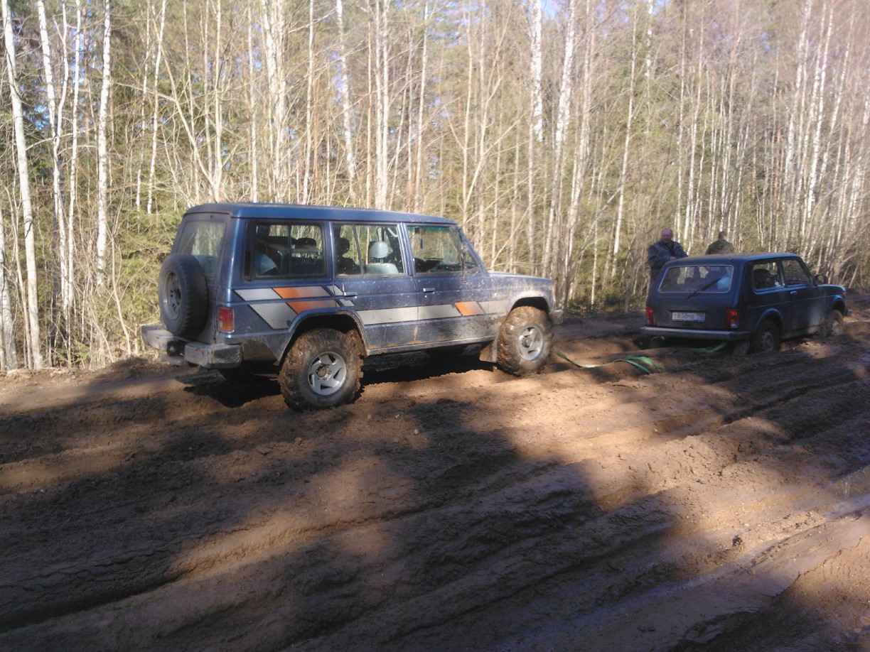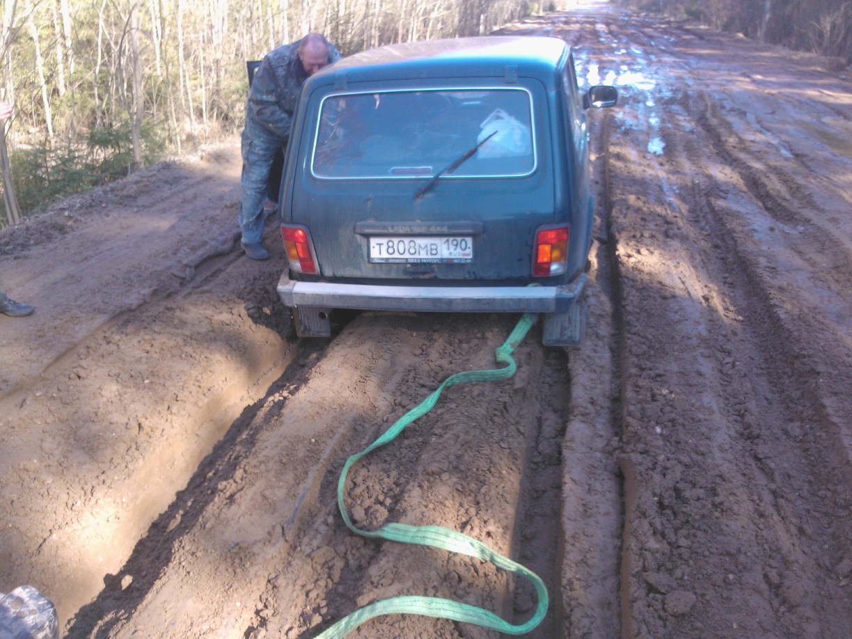 )Но в бардачке нашелся маленький шестигранник,которым я в половину выкрутил смазочную пробку на барабане и за нее все же зацепил трос.С горем пополам выбрались,грязные,мокрые,уставшие,но довольные.На сухом залез под машину и увидел,что не только креставина рассыпалась,но и ухо кардана откололось.так что я попал на передний кардан.