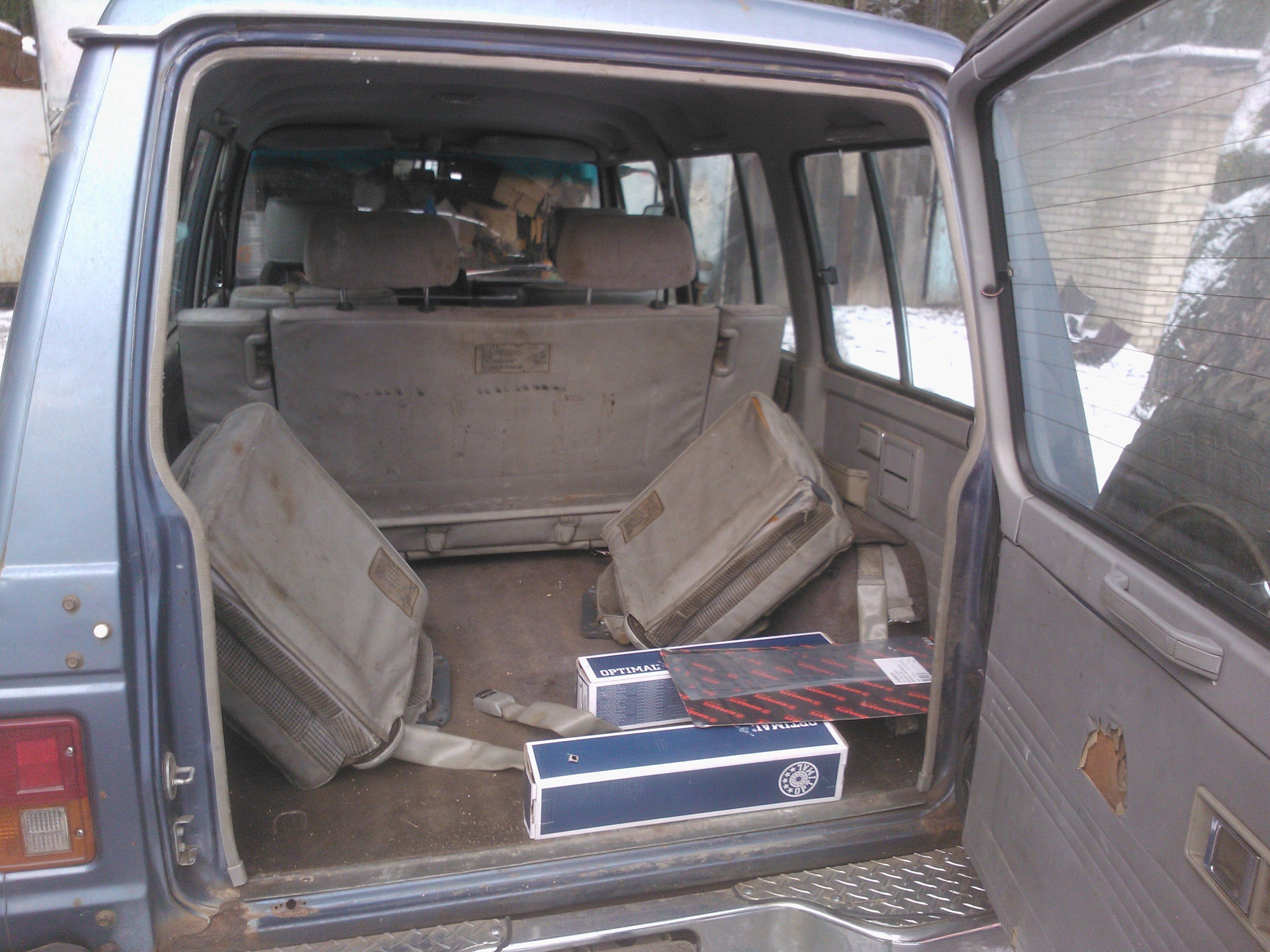 Собственно приобрел я себе заместо вездепролазного уазки паджерика 1 с комплектом почти новой зимней резины на дисках литых.Причина замены авто-условно дальние расстояния(до 500 км),тяжело дающиеся на уазе.Машинку взял в Твери в конце октября,в птс была вклейка (номер рамы кирдык),весьма прилично насношался с переоформлением на себя,но 5 тыров и местное гаи сделали свое дело.После этого вздохнул с облегчением и начал разбираться-А что же я собственно взял?Мотор масло жрал наравне с бензином,перебрал сам(около 20 тыров на запчасти ушло).Подвеска перед-зад перебралась полностью,заменил правый шрус,в крайне выезде сдохли хабы(один не включается,другой не выключается),включил их вручную на постоянку,предварительно разобрав и выкинув изношенные фрикционы.Буду мутить механические,но чутка попозже.