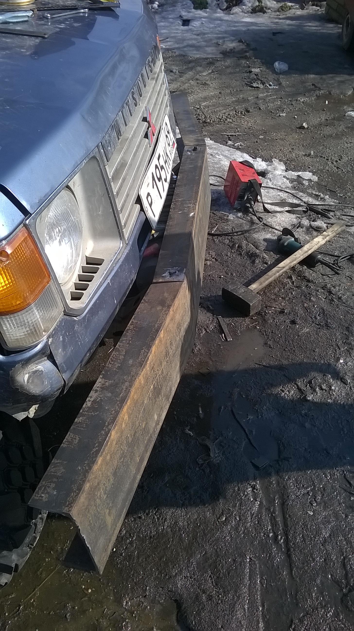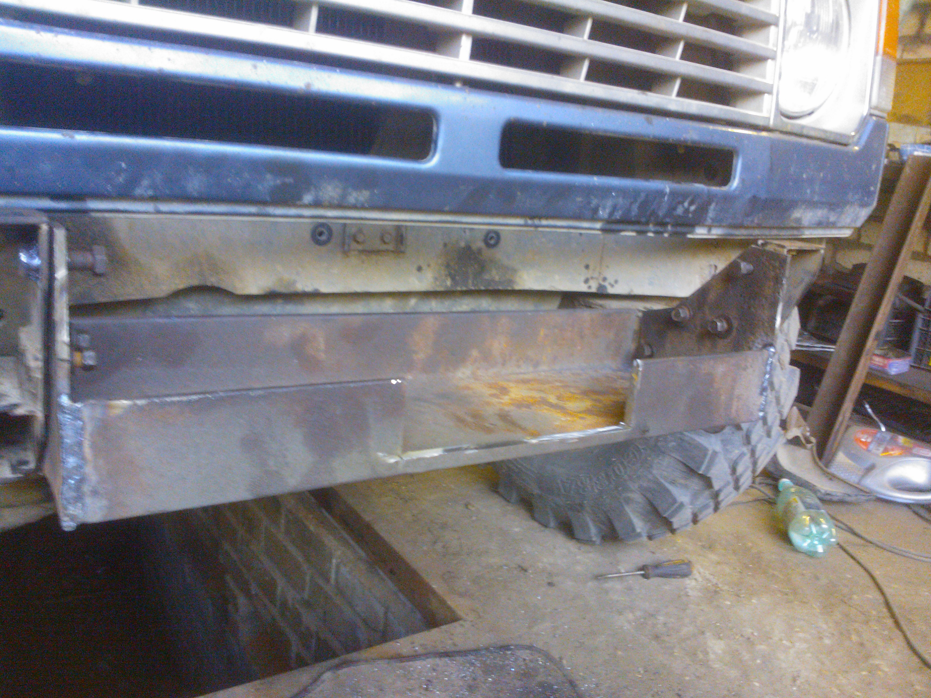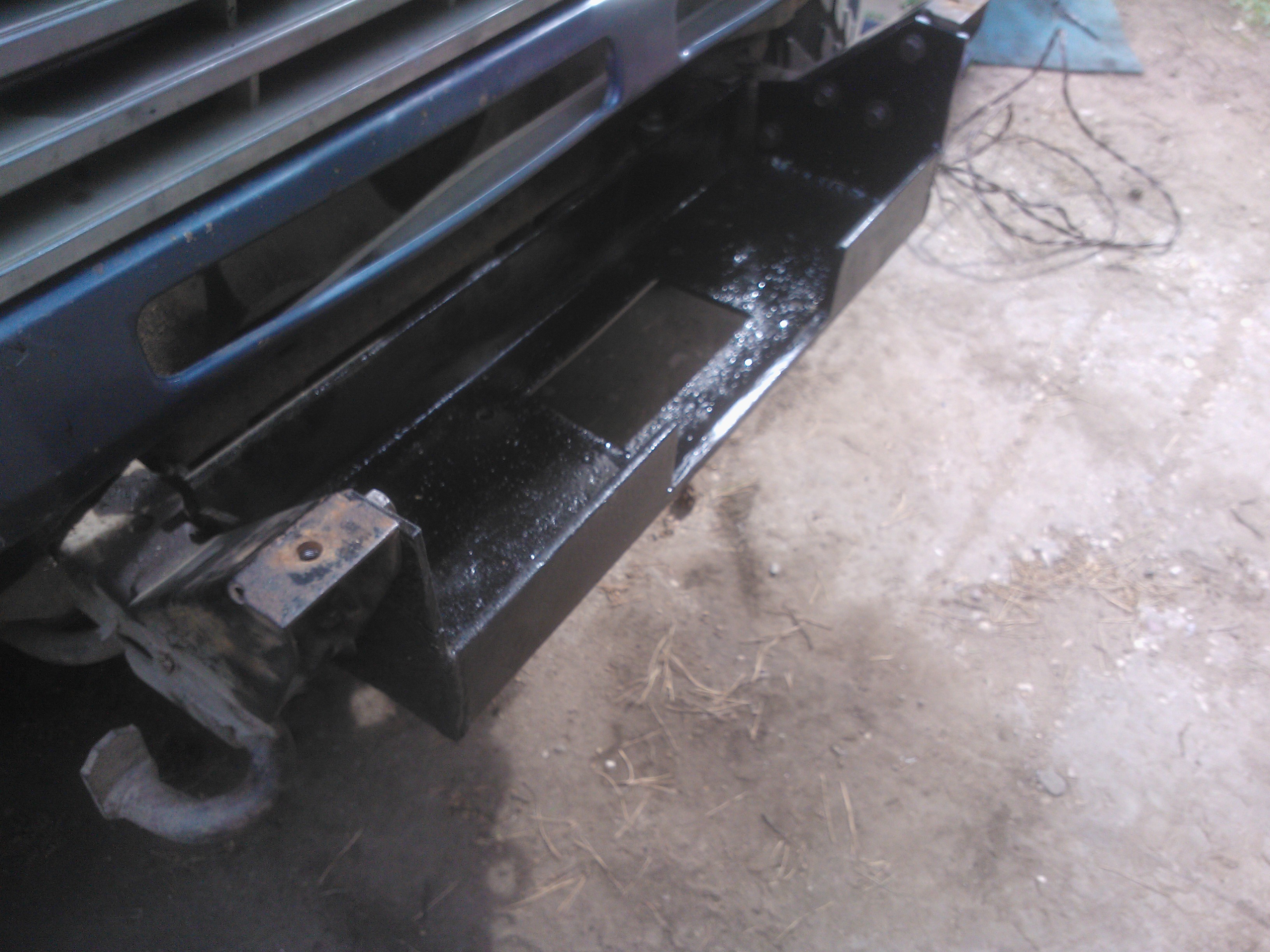 Вот что получилось Сверху крепится болтами в штатные отверстия,снизу два просверлил в площадку под лебедку.В принципе можно замутить и боковые крепления от штатного бампера,предварительно отрезав их от него,но я не стал заморачиваться.