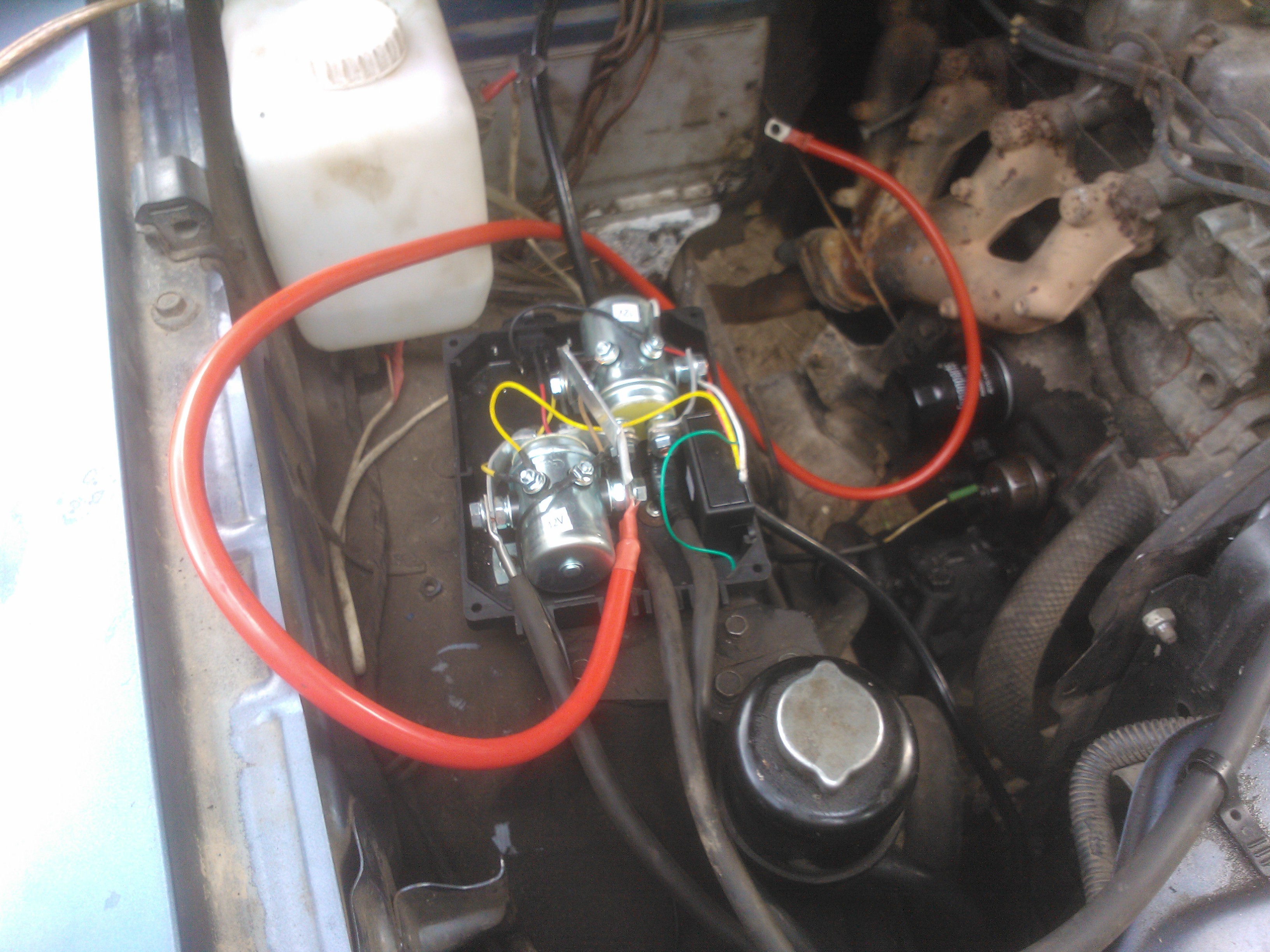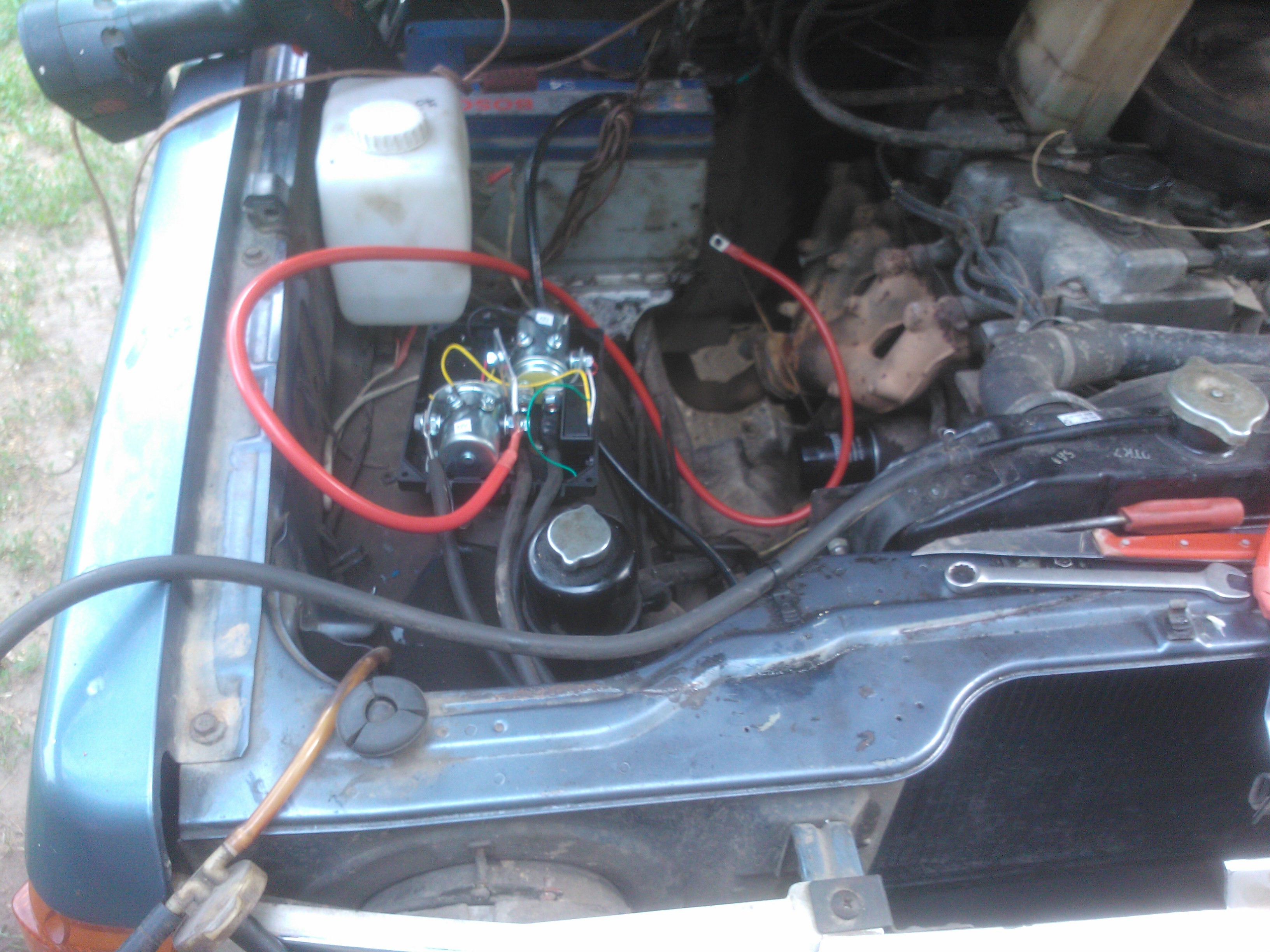 Блок перенес под капот,для этого был приобретен сварочный кабель ,под капотом ему будет посуше.