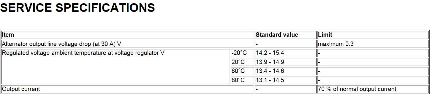 Вот примерные цифири вольтажа на клеммах гены в зависимости от t°C при 30A нагрузке Чем выше t°C,тем мене напруга.tr0y писал(а):вообще какое напряжение в бортовой сети на Pajero норма?