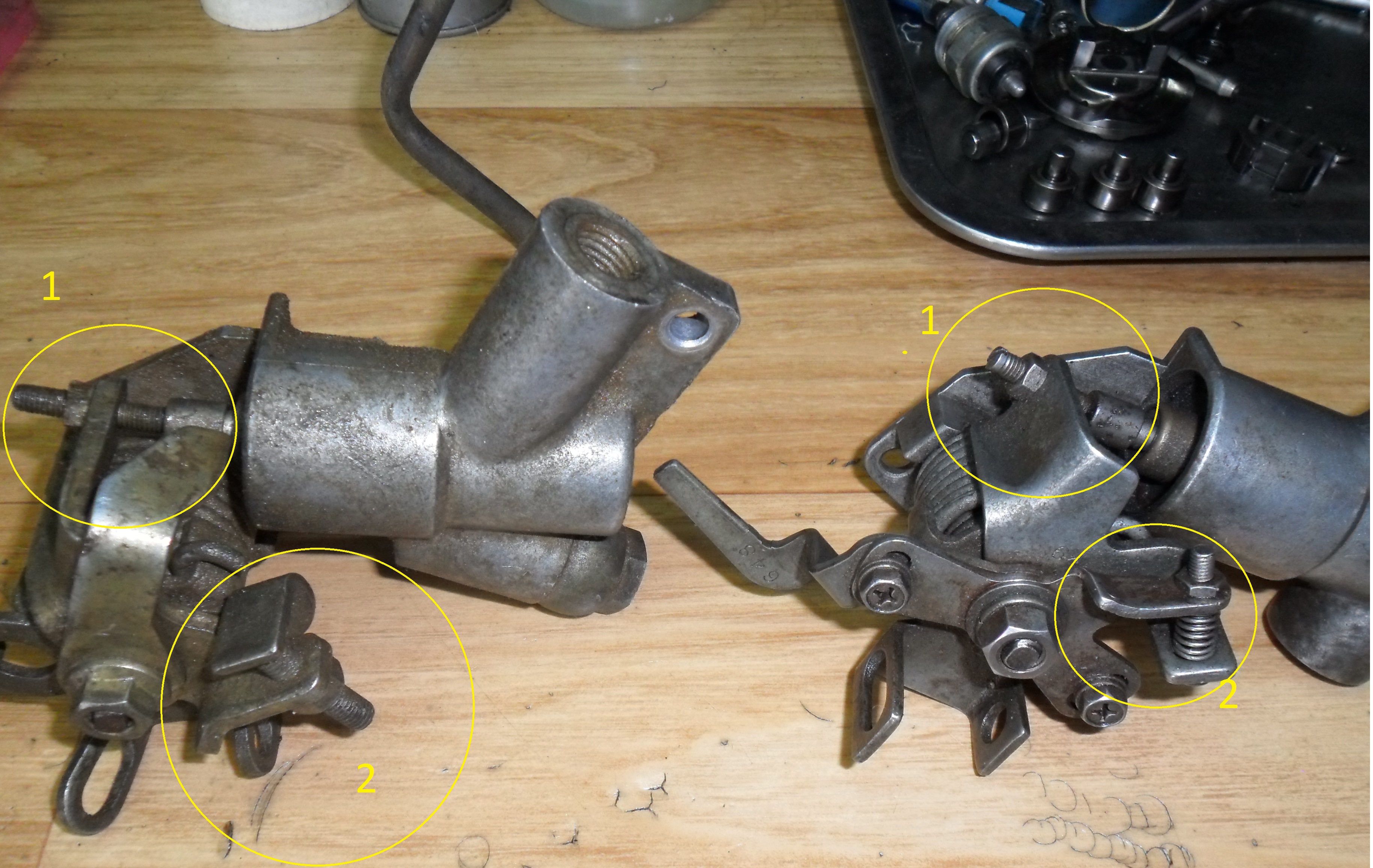Центральный винт под №1, его трогать нельзя, он настраивается на стенде.Отважный писал(а):Спасибо, автомат холостого хода и в правду не. отрегулирован. Сначала он вообще не ш реагировал на нагрев мотора, потом. отмачив вдшкой начал шевелиться. заметил положение в холодном и горячем состоянии. Оно разное. В холодном не дожимает до. гашетки где то 3-4 мм. Надо смещать. А в какой последовательности регулировать? Сначала рычаг автомата или рычаг газа который в автомат упирается? И как отрегулировать угол впрыска (который 2 град.. меняет) центральным винтом на автомате? форум читал, но как то все. кучно описано, не понял единой схемы. Вы не поделитесьrover писал(а):Упирается в рычаг подтяга кандёра, или не правильно отрегулирован автомат холодного пуска, можетОтважный писал(а):А у меня рычаг газа вообще не упирается в болл., а обороты 850. Это же не нормально? Кто подскажет, за счет чего тогда у меня обороты держатся?