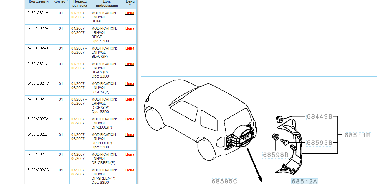 Не входит. Партномер каркаса 5839A010. По поводу стоимости. Каркас + калитка + работа у ОД обойдётся под 60 тыс. Вот так))) Можно купить подешевле- китайский аналог калитки, напр. http://www.mitsubishi-spb.ru/catalog/it ... hp?id=1988 Внешне сделан вроде нормально, но за эксплуатационные характеристики не скажу. По выбору цветов калитки китайского пр-ля не помню. Ну, или с донора (около 5000 руб.) плюс покраска.