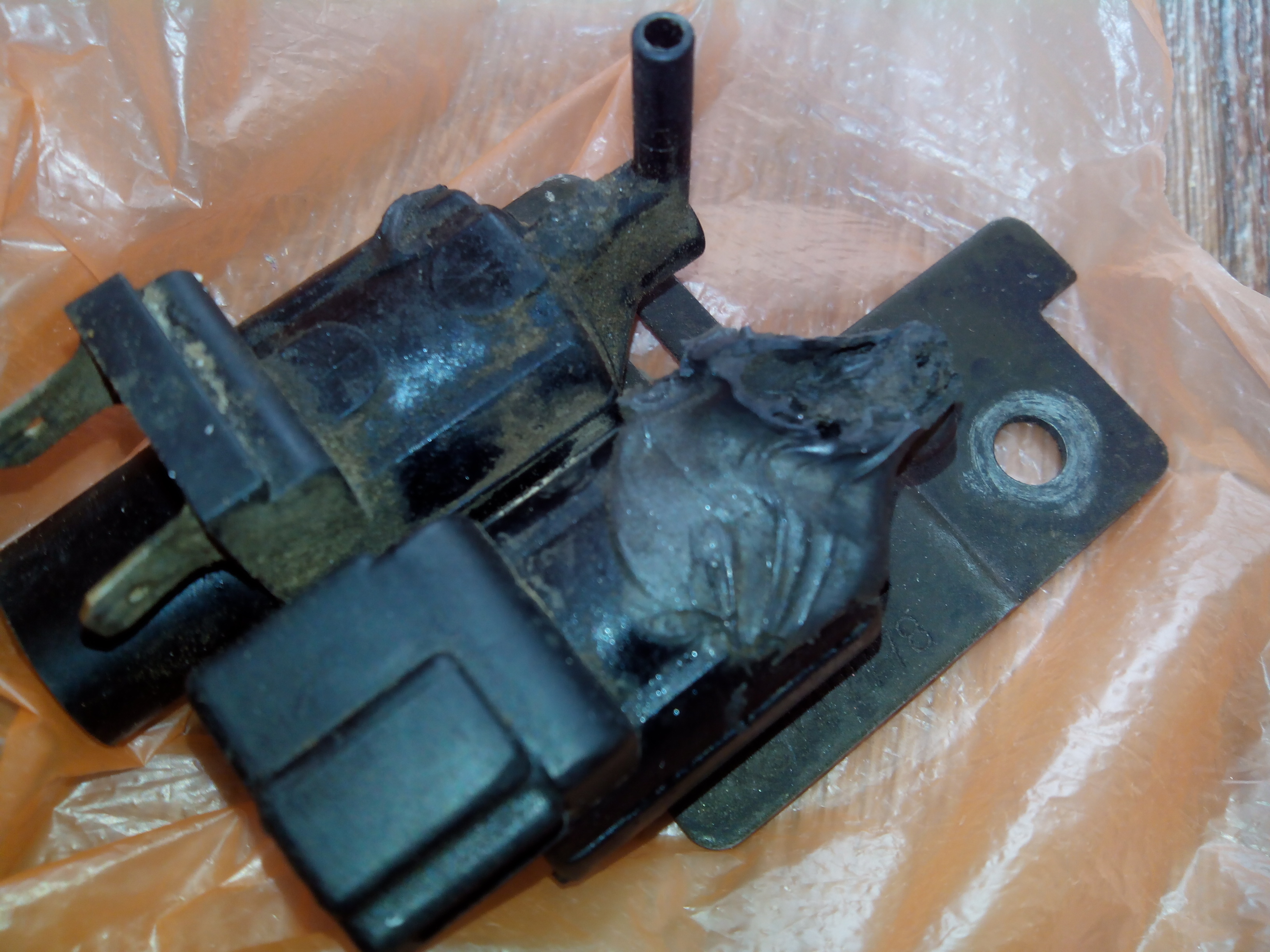 Мои мучения с 41-ой ошибкой довели меня до этих реле/клапанов. Оказалось, что они все обломаны и замазаны герметиком. Два дроссельных заменил на б/у (на их планке мои старые на фото). Не представляю, как это прежде работало т.к. летом про 41-ю ошибку почти забыл, а с морозами ошибка стала опять почти постоянно.Dizel Man писал(а):Под АКБ стоят вакуумные реле управляющие актуаторами дроссельной заслонки и EGR. Шланг идет к датчику наддува...
