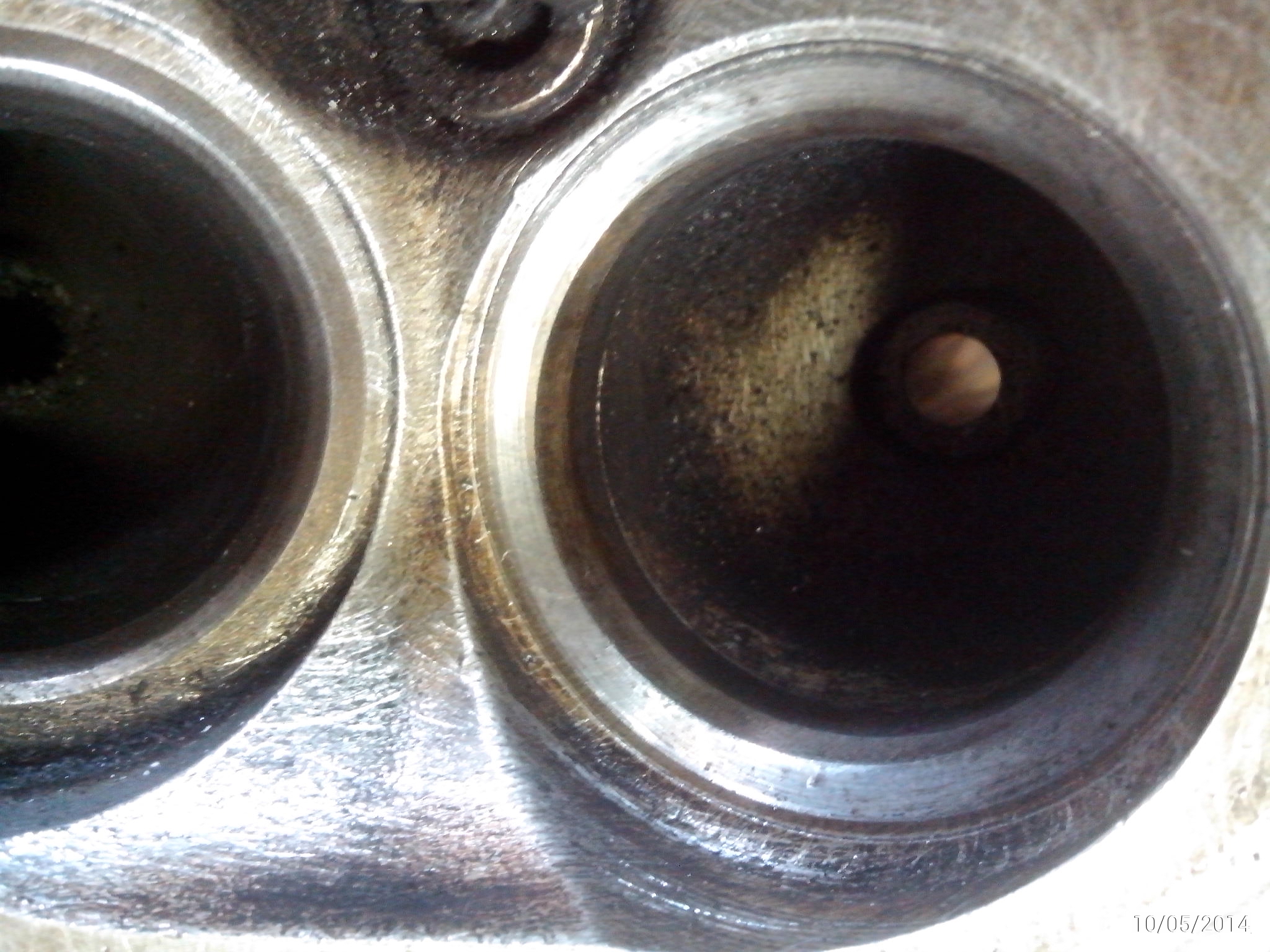 головы без трещин, левая разобрана, распр. без задиров, на седлах впускных кл. фаска рабочая уже 2-3 мм; правая не разобрана, могу разобрать. Смоляные отложения присутствуют.
