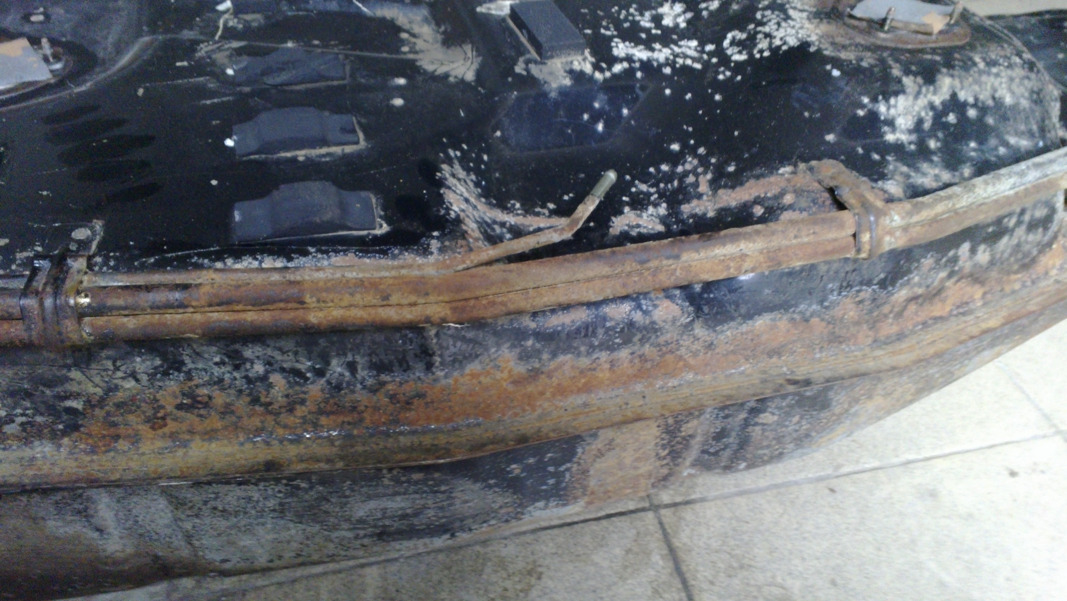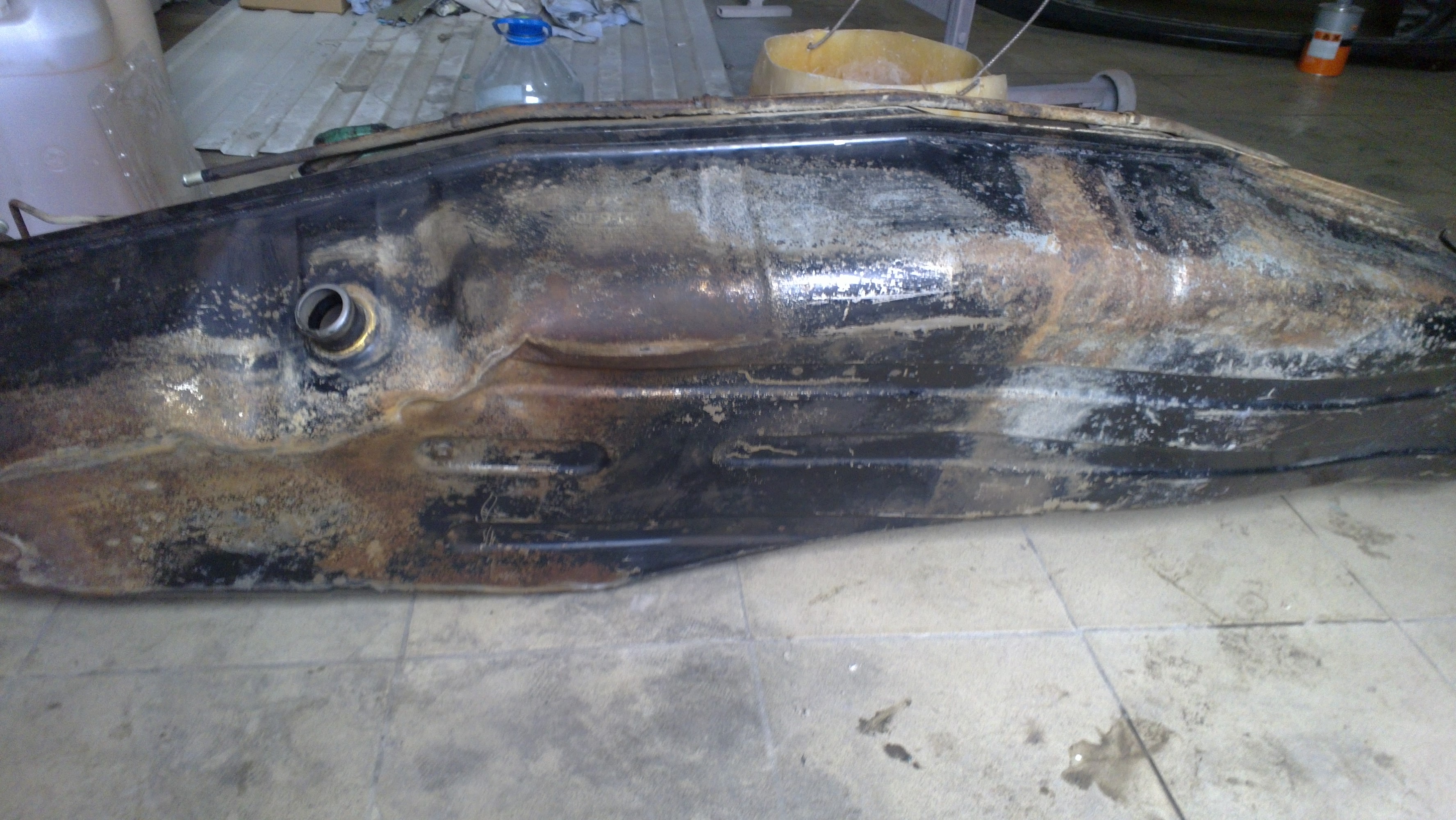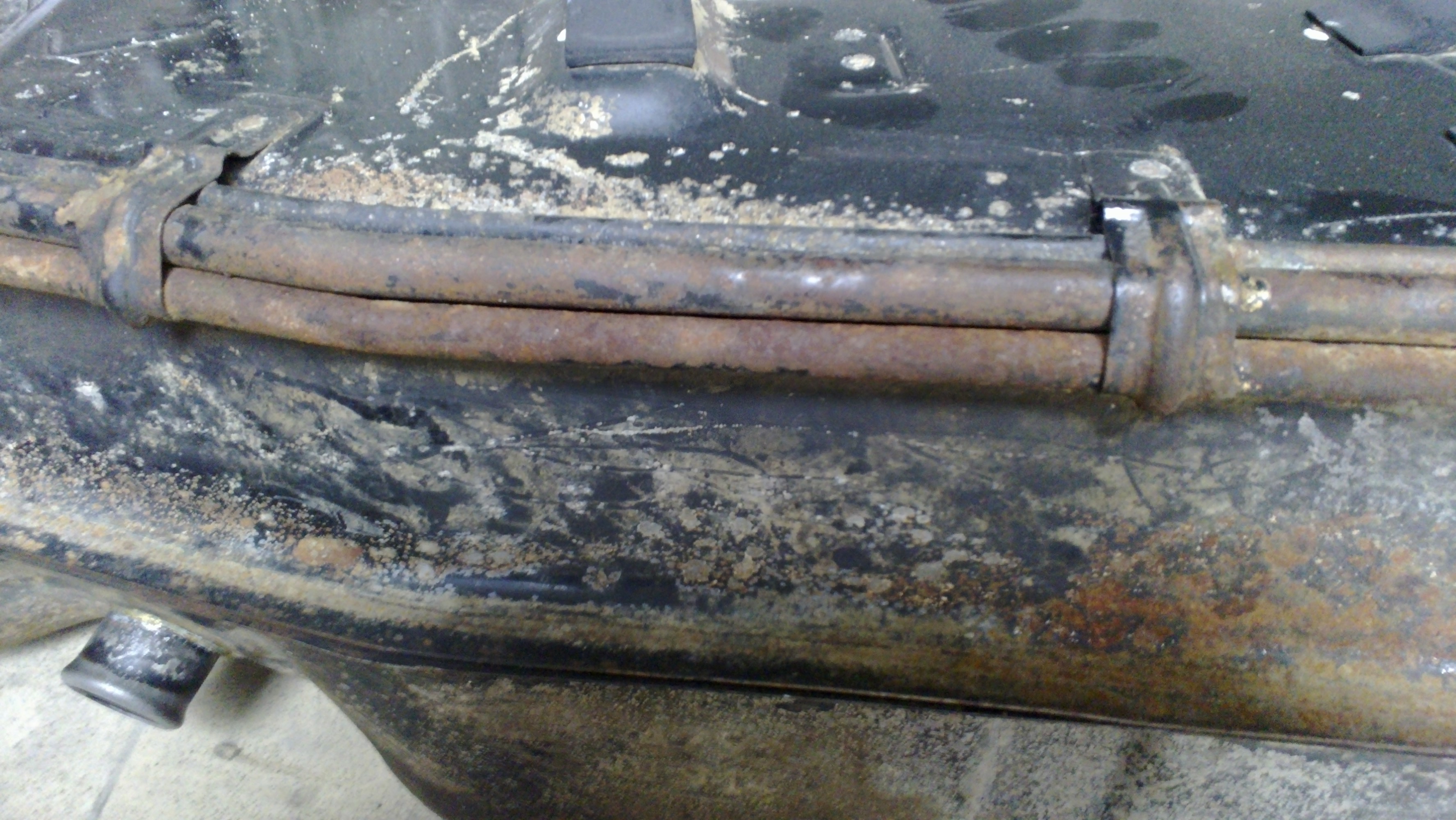 ). С правой стороны имеются следы поверхностной коррозии. Трубки целы. Спереди имеются следы пайки, в районе сливной пробки слегка подмят (думаю литров на -8).