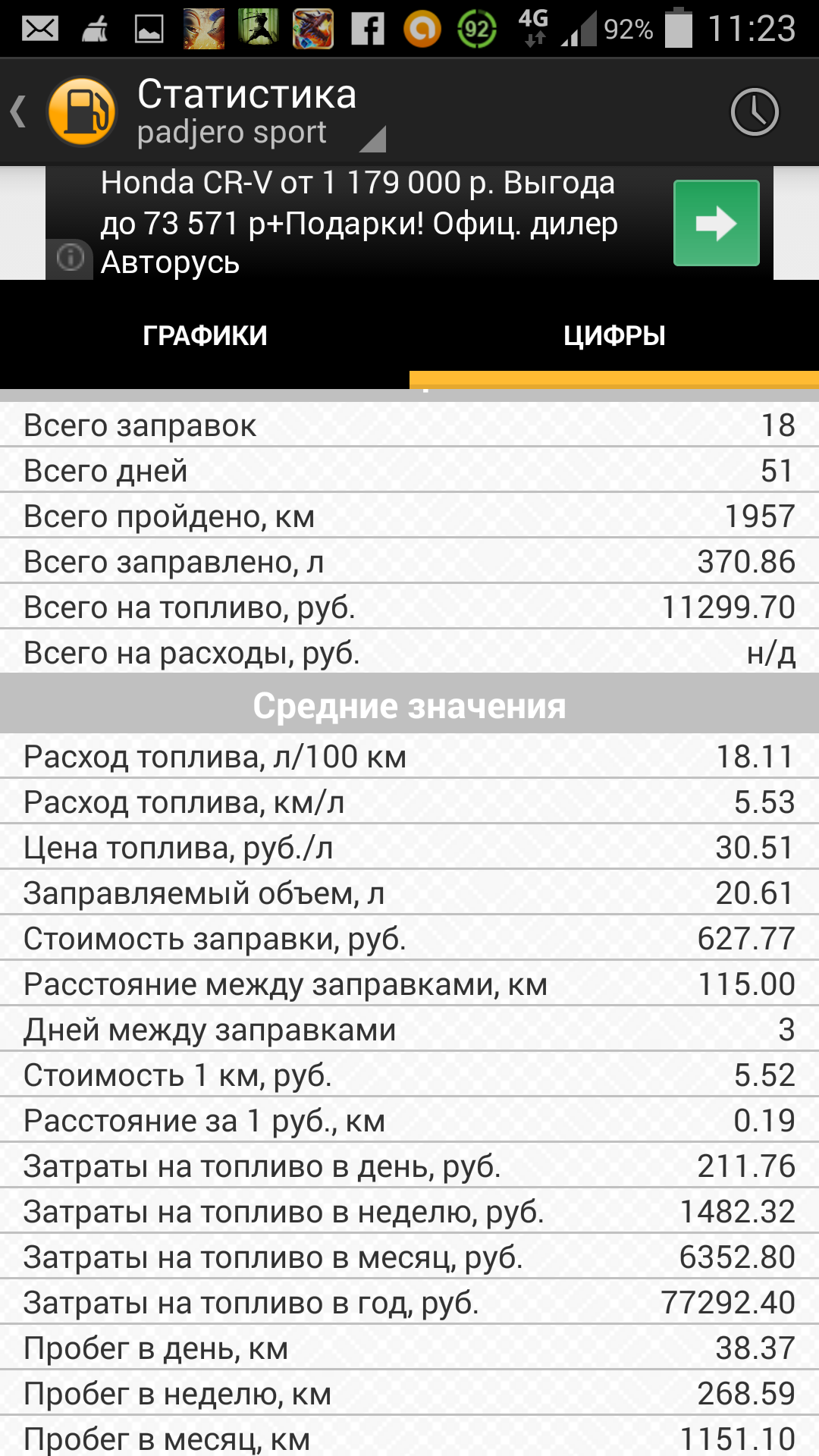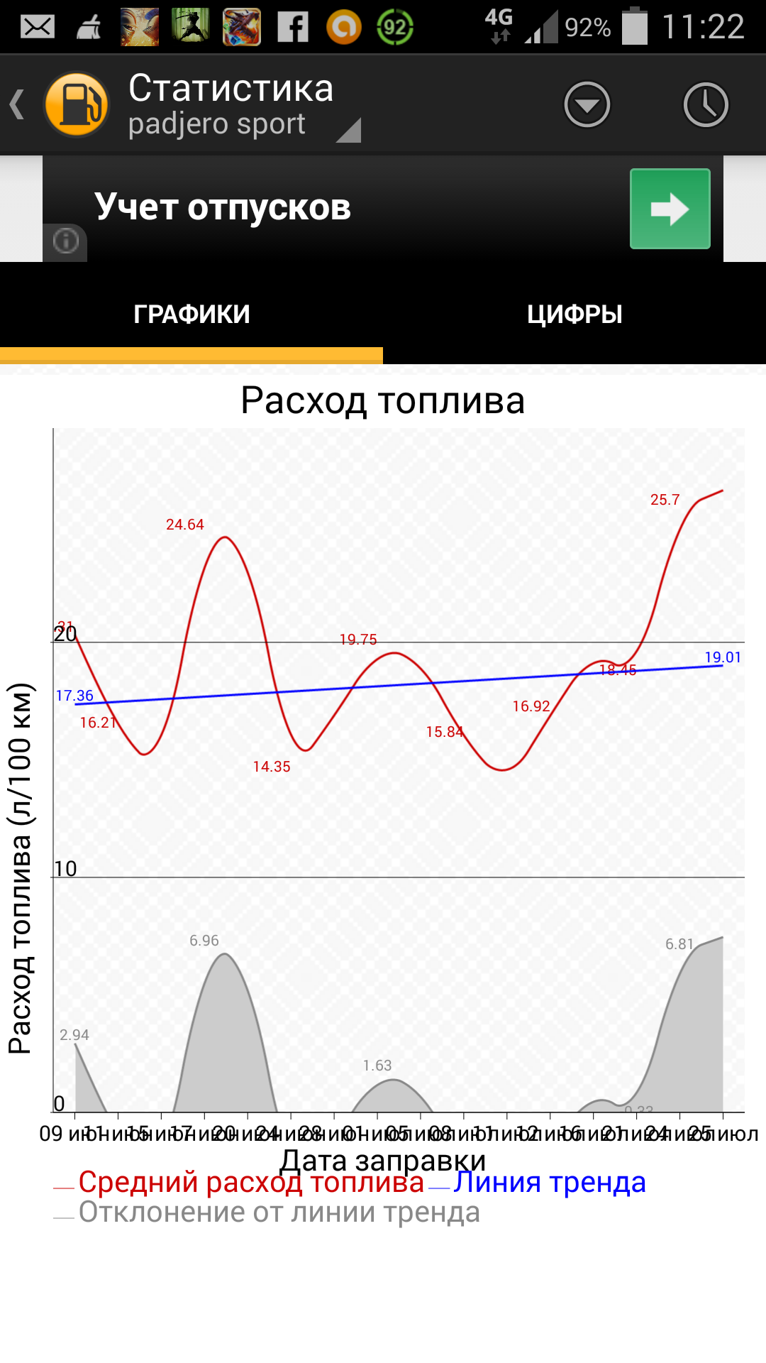 Использовал приложение для андроида "Топливомер"