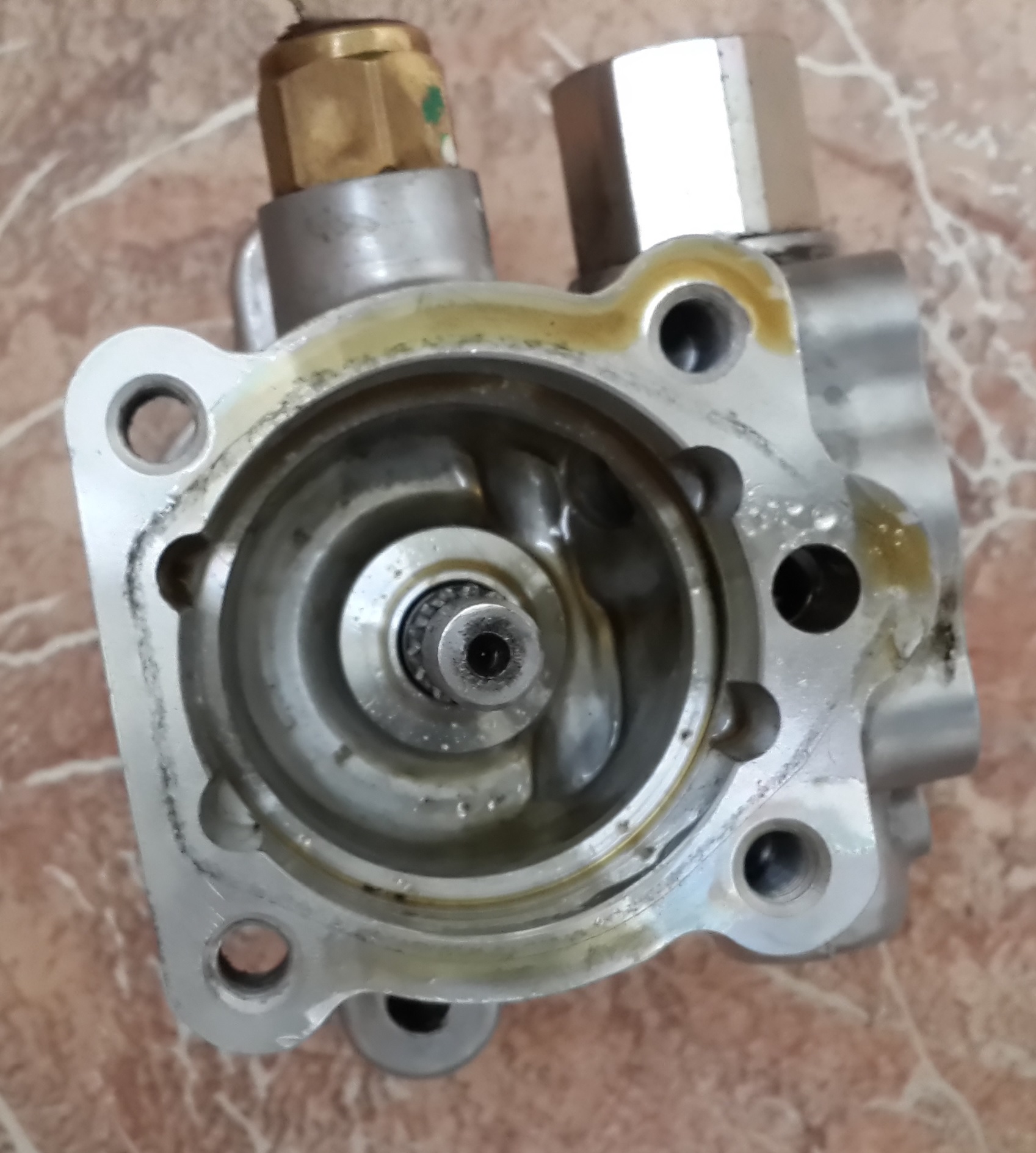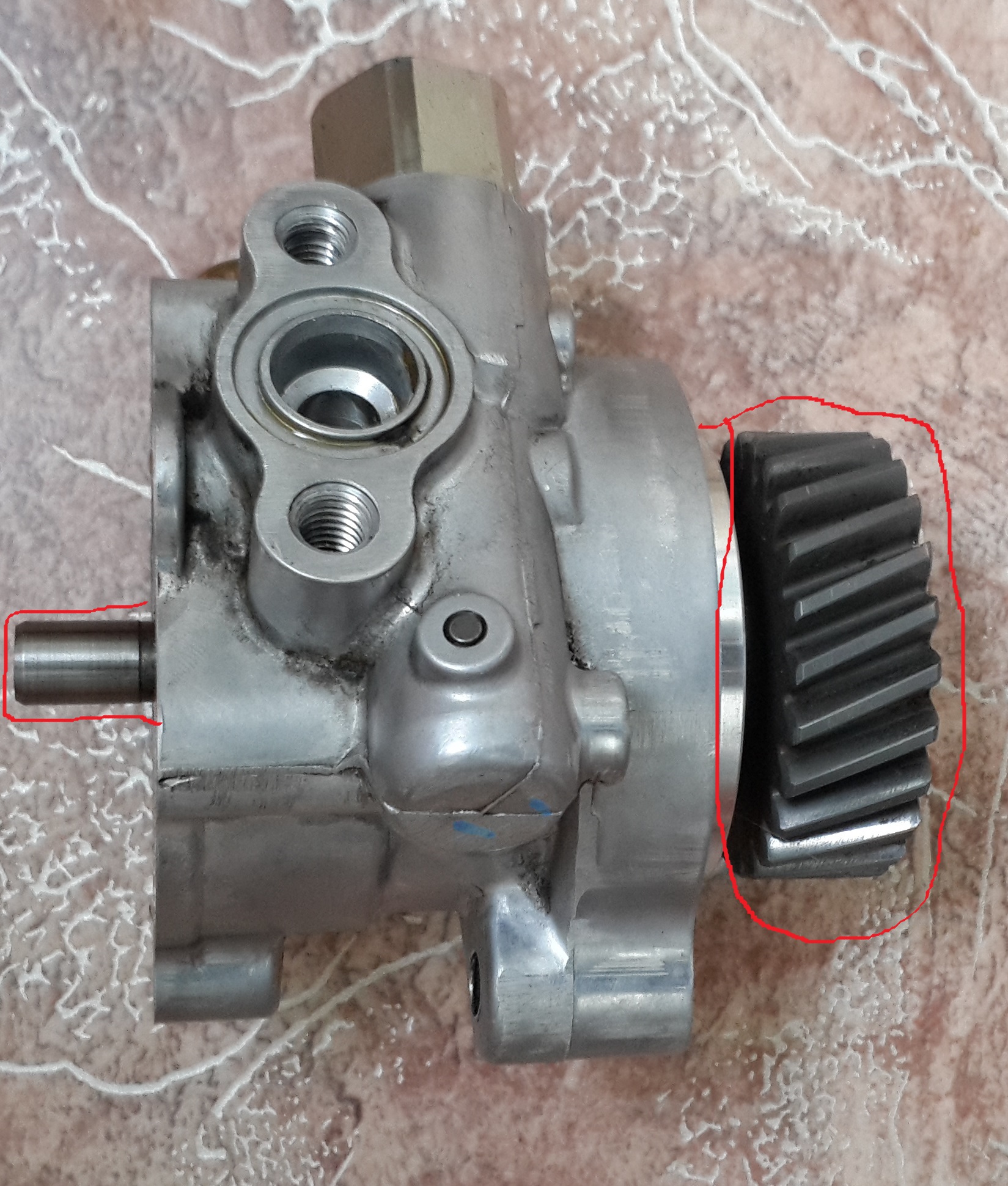 Сломался насос гура, нашел на разборе, заменил. Теперь хочу разобрать старый и посмотреть что там. Дошел вот до такой стадии и не пойму как вытащить этот стержень с шестерёнкой (обвел красным).