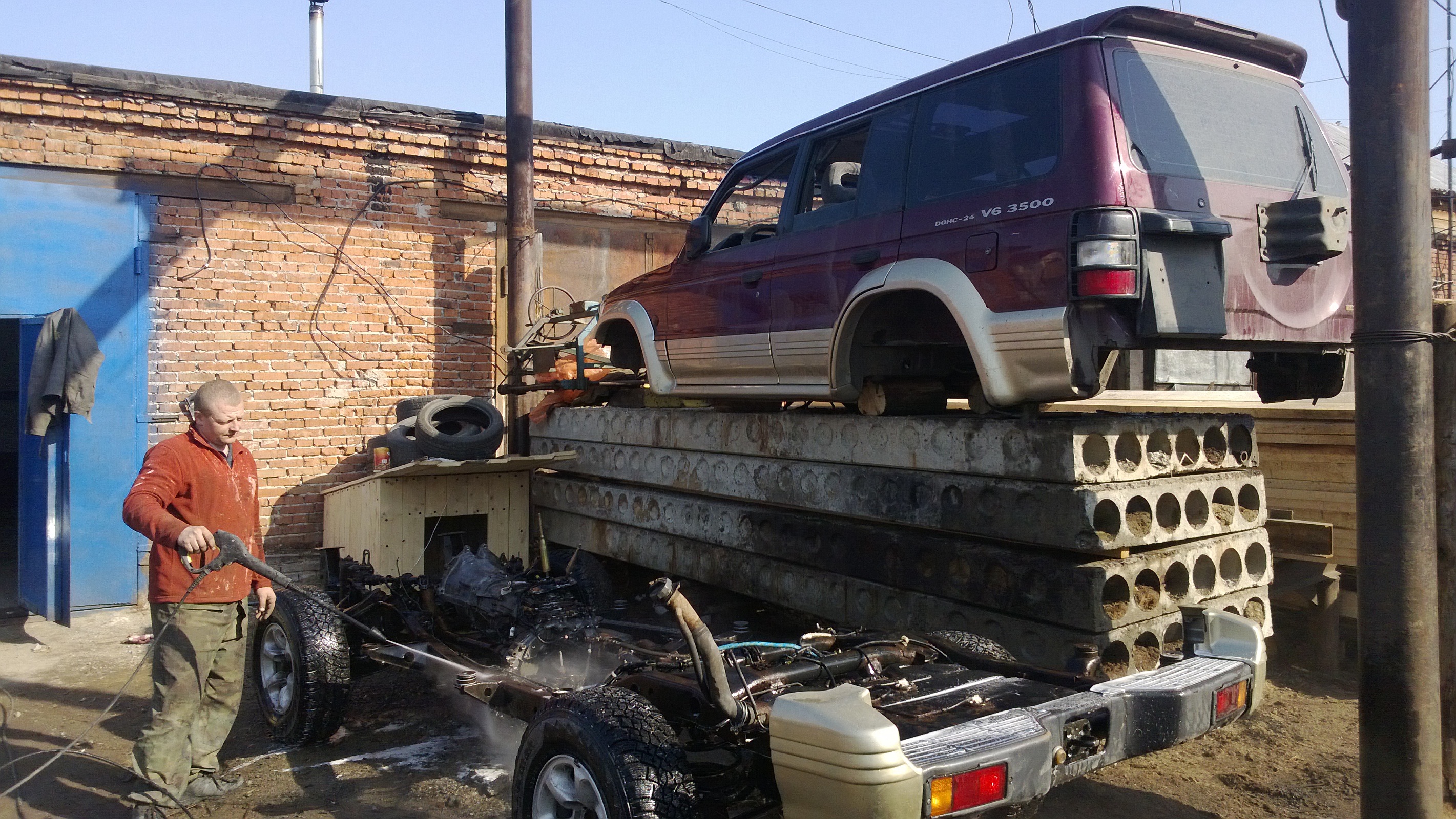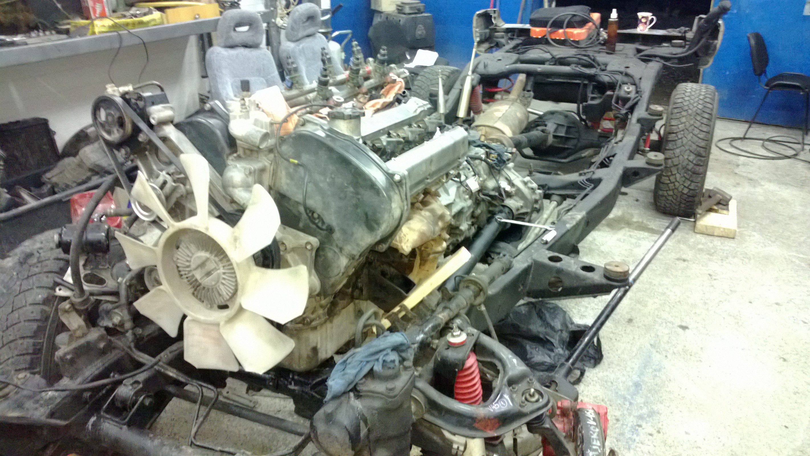 После покупки провели полный осмотр и началось. Сняли кузов, полностью разобрали двигатель, раму перекрасили и покрыли мастикой.