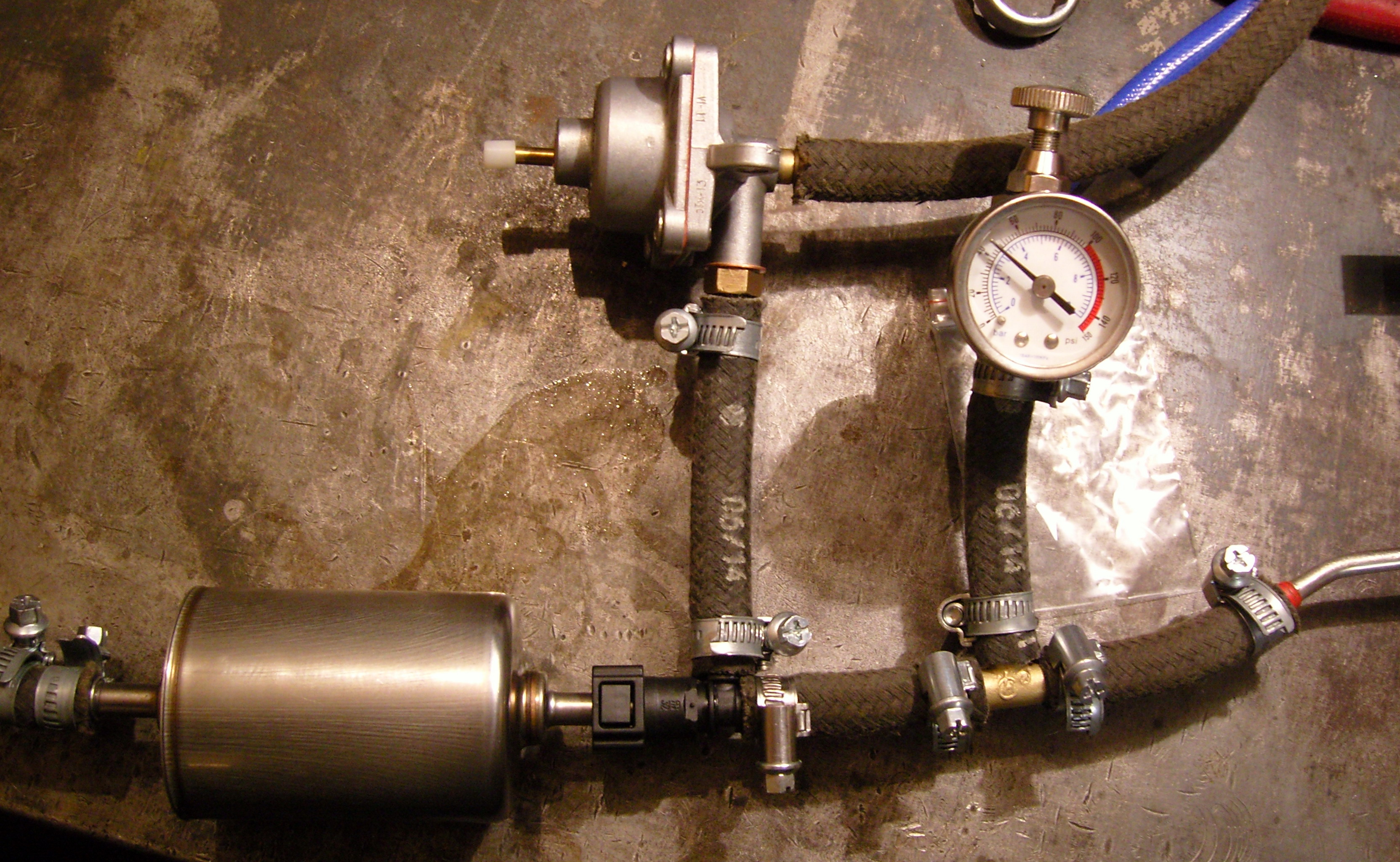 Возможностей обратки ТНВД совсем не хватает,допнасос затыкается через пару секунд.Консультировался у Меков,сказали так и должно быть,нужен отдельный регулятор.Штатный то в модуле в баке не зря стоит.При работе на закрытый слив волговский 8 атм давит.Манометр в принципе не нужен,но в этой приблуде имеется запорный клапан(крутилка сверху) и она мне подошла для безопасного сброса давления,после выключения насоса,чтоб не дристало винсом при снятии шлангов.