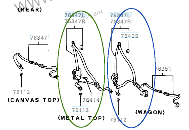 Зелёным ремни для коротышей, синим для 5-ти дверных вагонов.