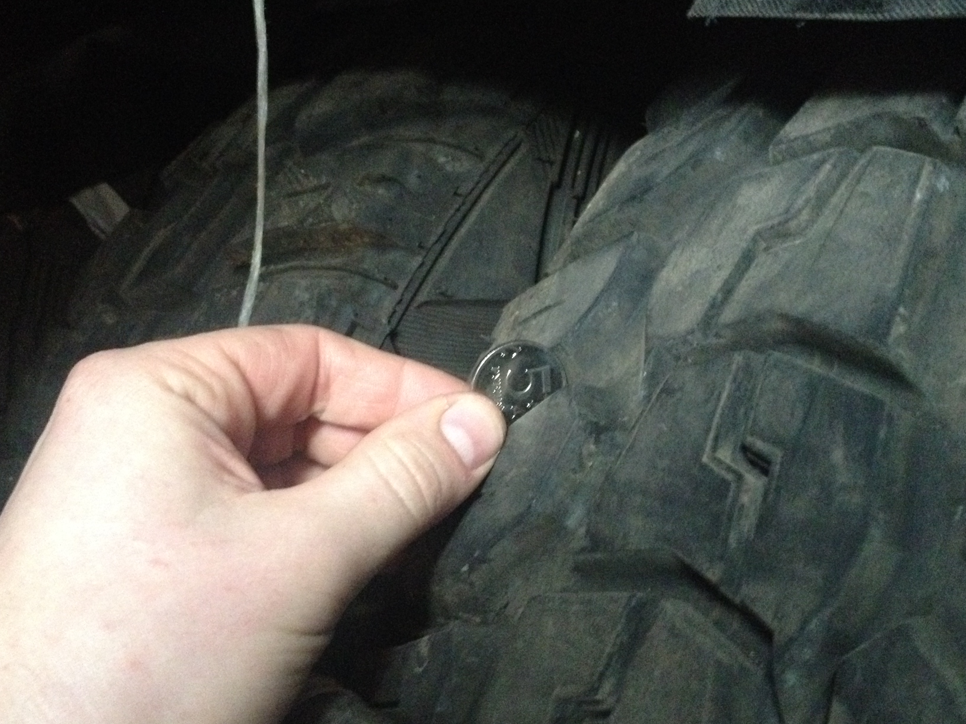 На двух колёсах остаток 10-11мм; еще на двух 14-15мм