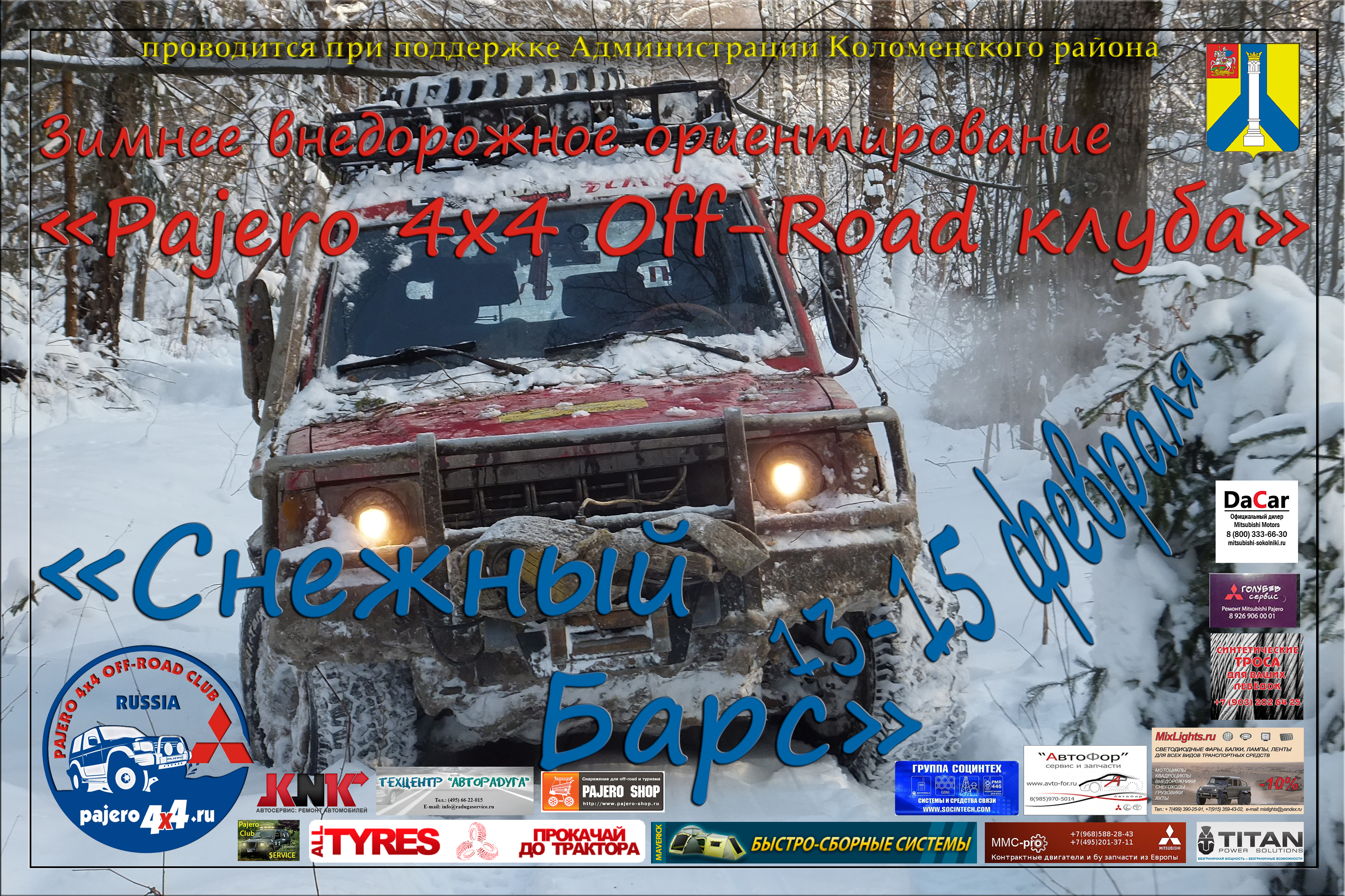Снежный Барс это ежегодное зимние мероприятия проводимое Pajero 4×4 Off-Road Клубом, которое включает в себя несколько спортивных состязаний в которых будет выявлен победитель. Спортивная часть мероприятия рассчитана не только на подготовленные внедорожники, но и совсем стандартные автомобили. Также для всех детей которые приедут вместе со своими родителя будет организованна детская программа. Все вопросы можно задать на нашем форуме или просто связаться с организаторами.