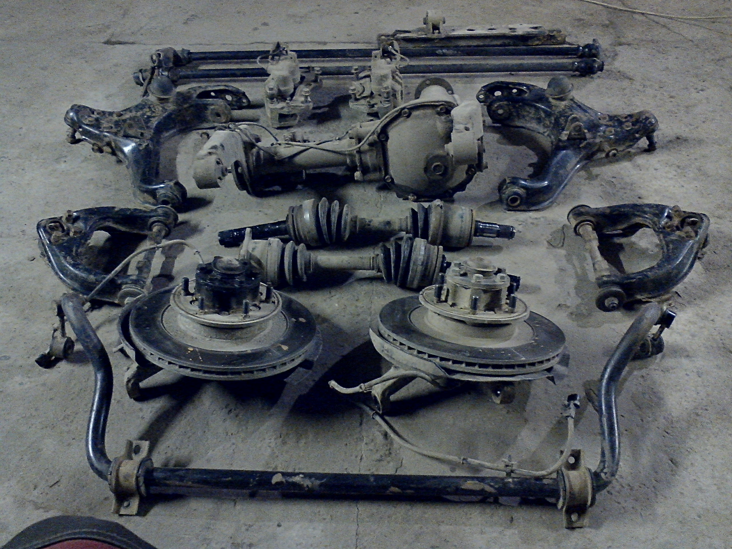 Остались торсионы, стабилизатор, правый поворотный кулак и приводы.