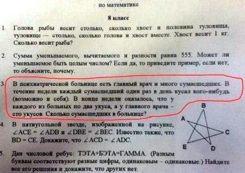 Суда по задачке он там и остался (покусанный)pajero696 писал(а):Составитель задачки был в "Кащенко" на "День открытых дверей"?Димьен писал(а):Я видел по-круче задачку