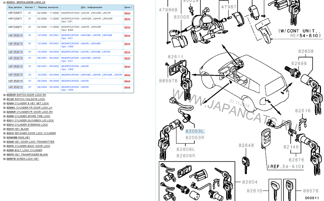 Смотреть надо: Кузов->Замки и ключи.