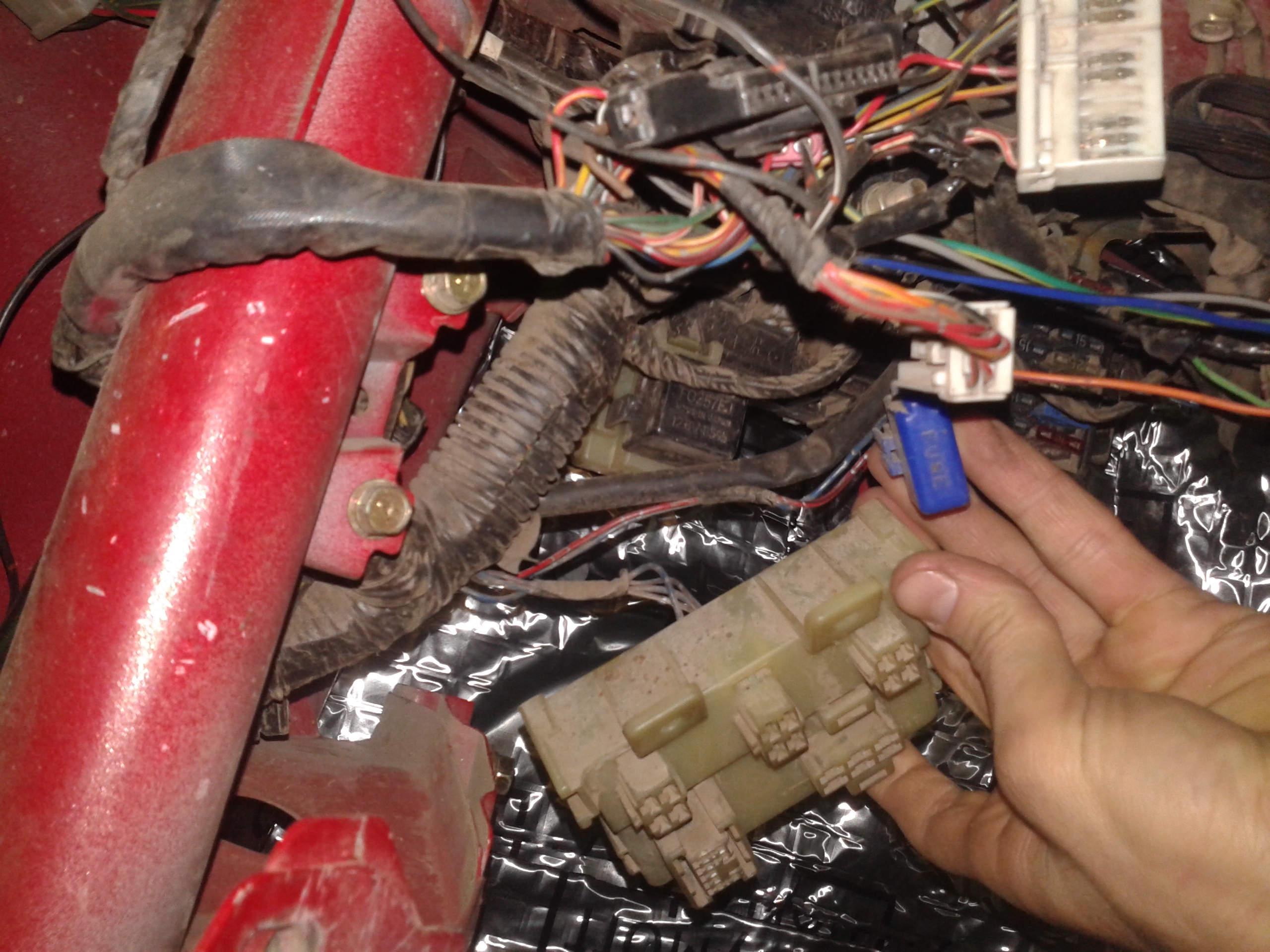 нашёл ещё лишний блок, точнее колодку, на ней было реле, я его пристроил на другую колодку, на этой щас предохранитель и провода под не существующее что-то... вот думаю и это выдрать...