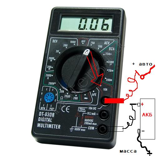 не снимаю щупы,ставьте авто на сигналку. тестер должен показать много(около 1-1.5 А),ждем секунд 30,смотрим цифры.
