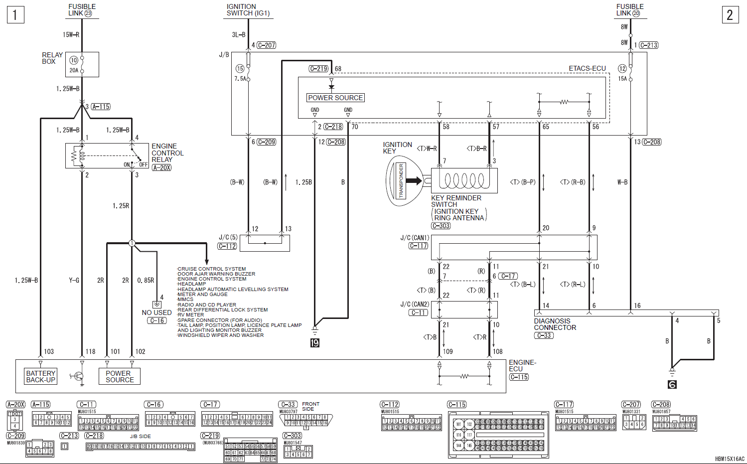 Судя по схеме - антенна считывателя иммобилайзера там без всякой "цифры" сразу на ETACS идет.SoundSpeed писал(а):Нет. Это шина, соединяющая модуль считывания ключа в замке и ЭБУ. Двуполярная, + и -. Похожа на КАН, только менее скоростная и для других задач. Можно разорвать +, можно оба конца. Может называться +/-, либо RX/TX, либо CODE/TXCT. Cмотрите схему иммобилайзера с антенной вокруг замка - там найдёте. У меня что-то временно техдок на НМПС не открывается, разбираться некогда, так что смотрите у себя. Я вообще, по памяти пишу, могу в названиях ошибиться.