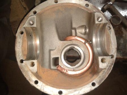 В отличие от тойотошных универсальных задних 8" редукторов которые по конструкции переносят всё без нарушения смазки дальнего подшипника ведущей шестерни, в наших желательно кое что доработать... Вариантов 2 , ничего не делать и как ниссановцы заливать переизбыток масла в мост, выше половины. Так реализовано в патрулях. Или сделать канал доставки масла до заднего подшипника, вот так:
